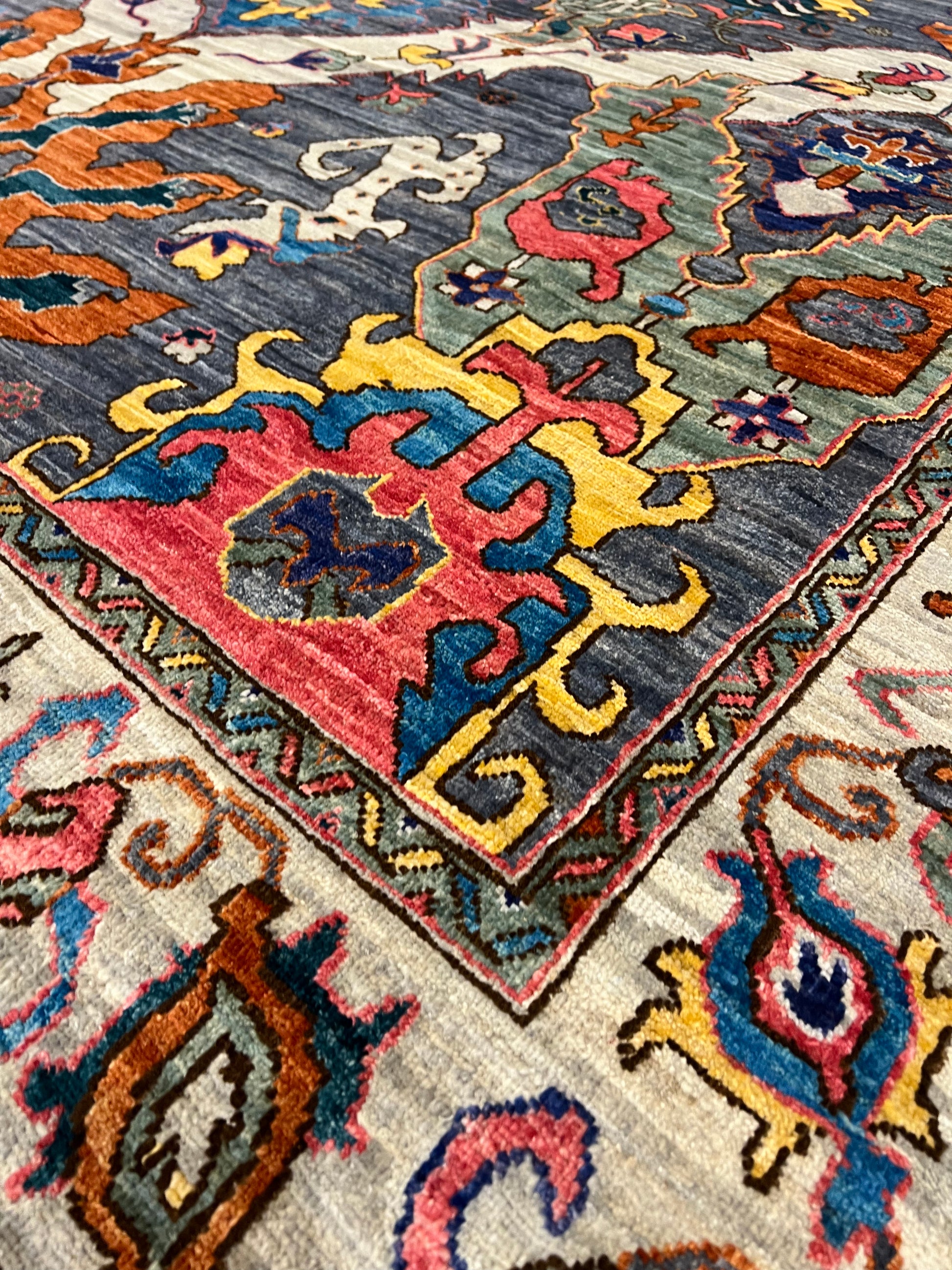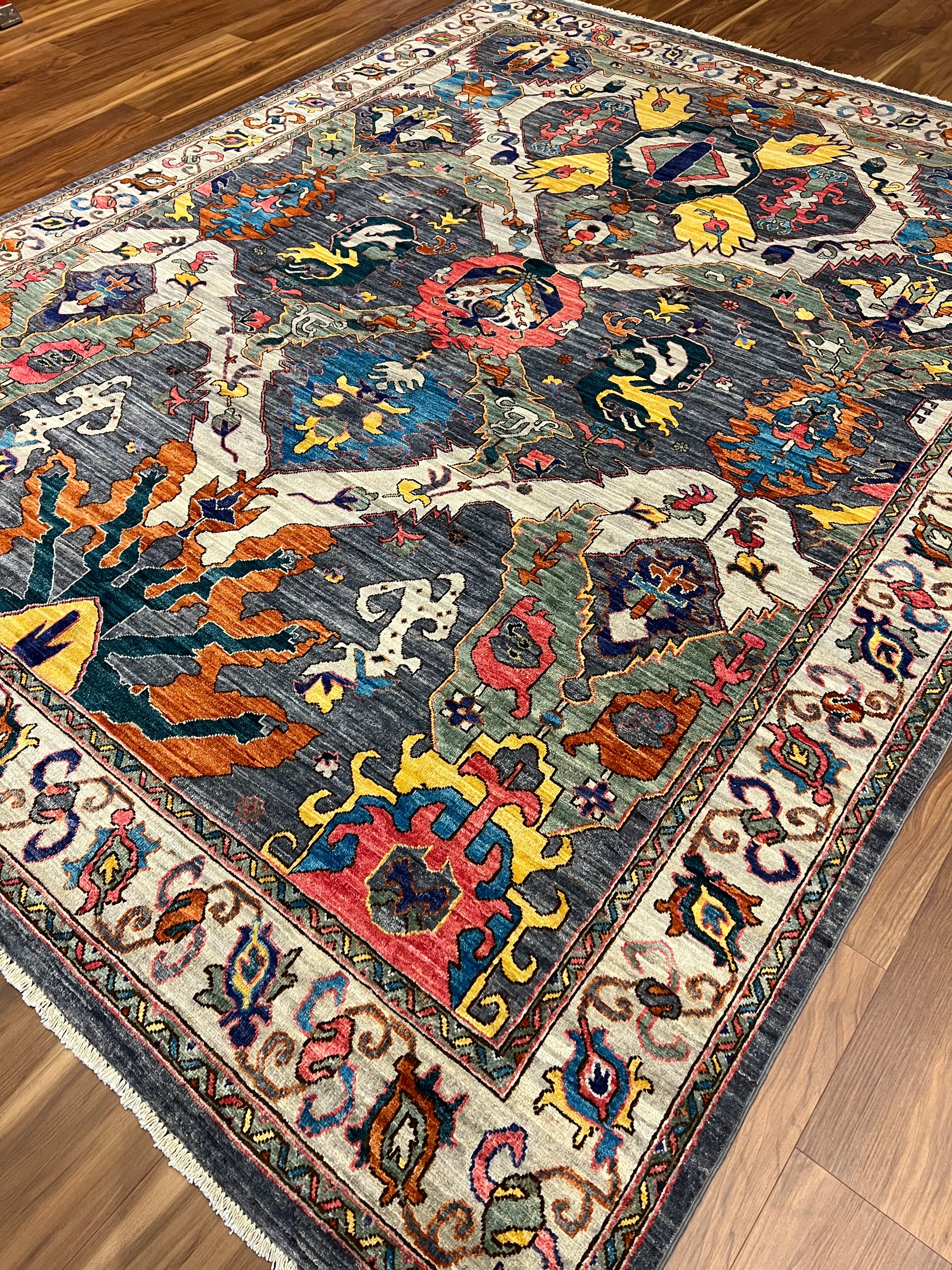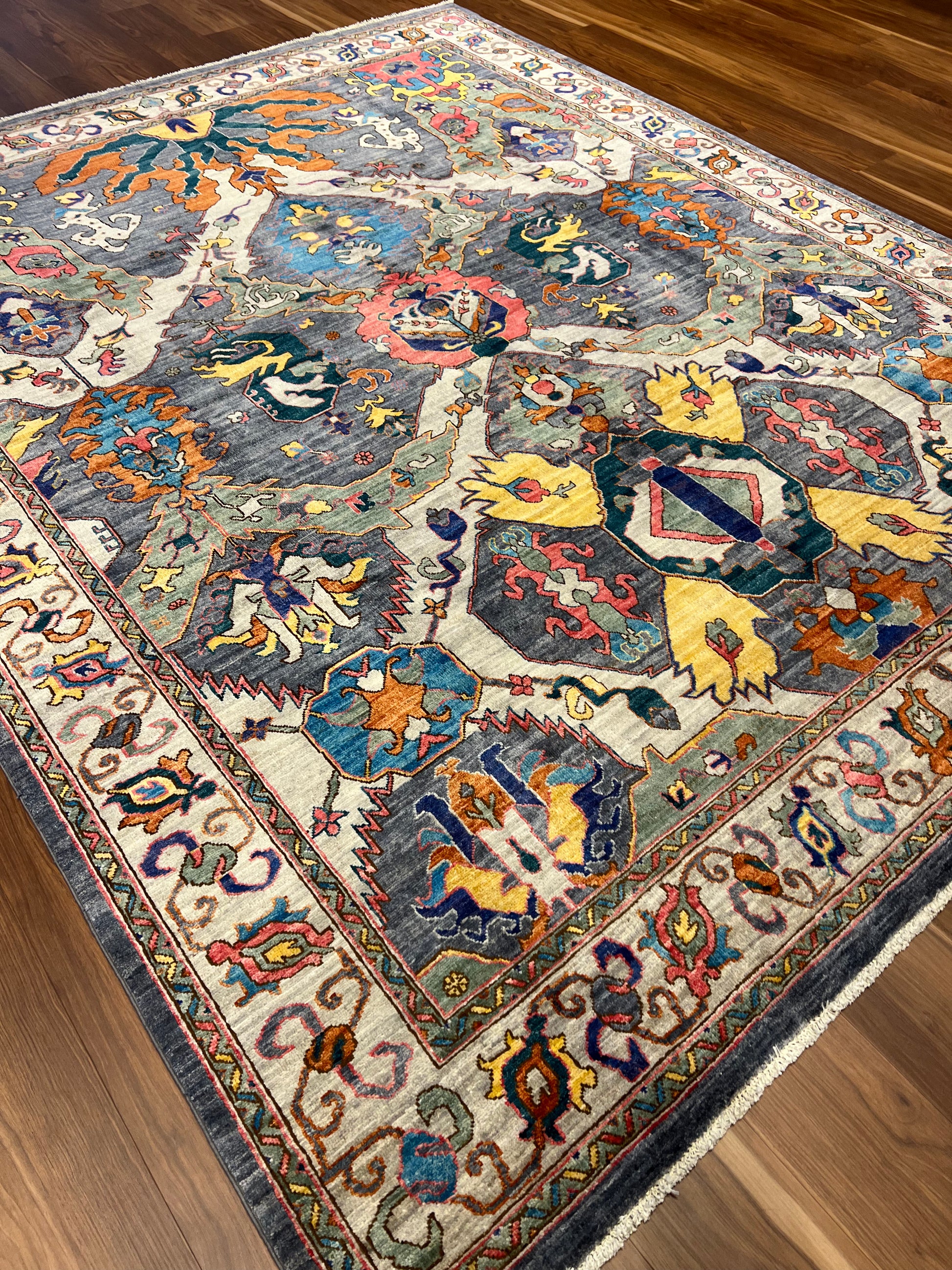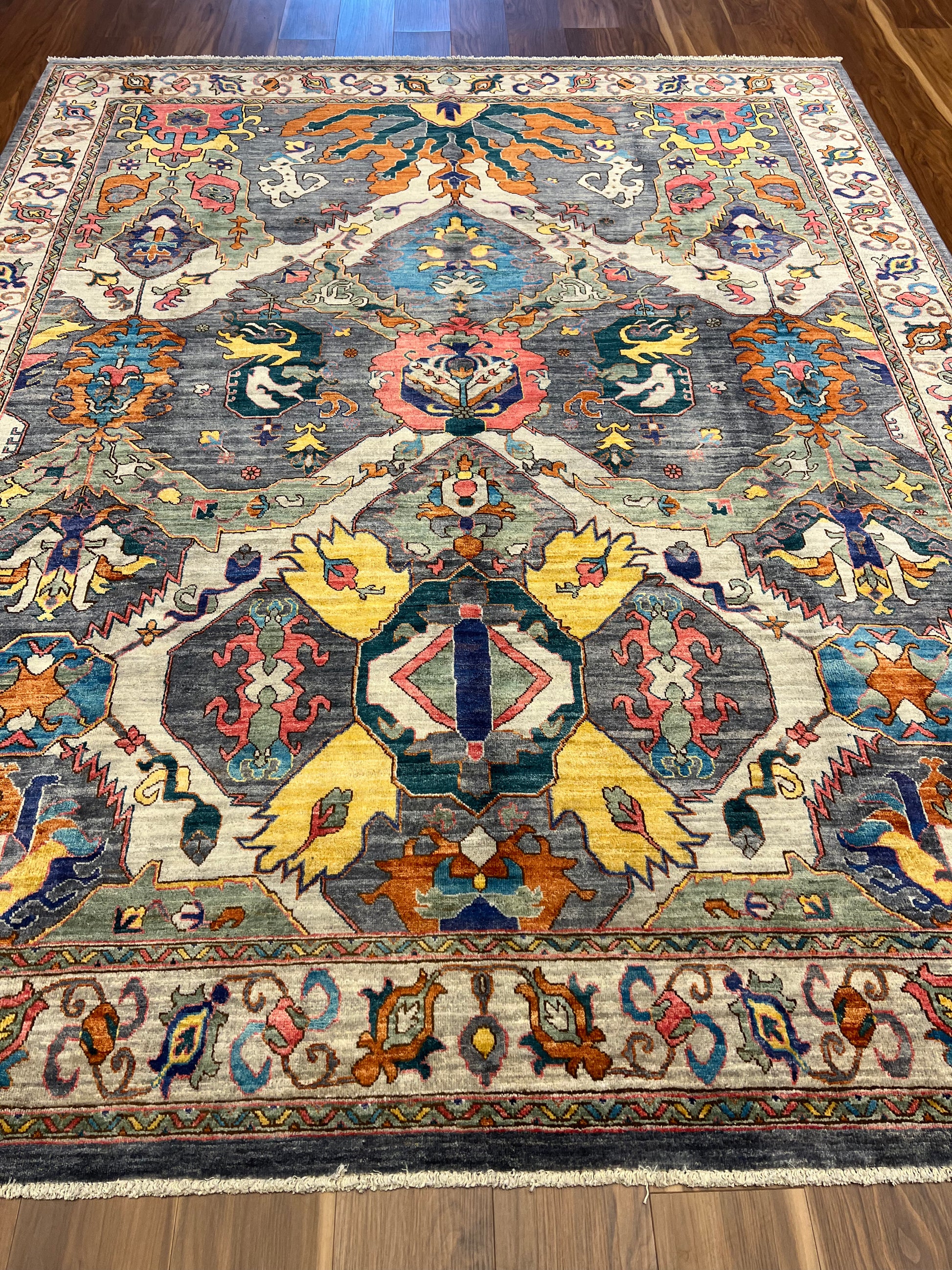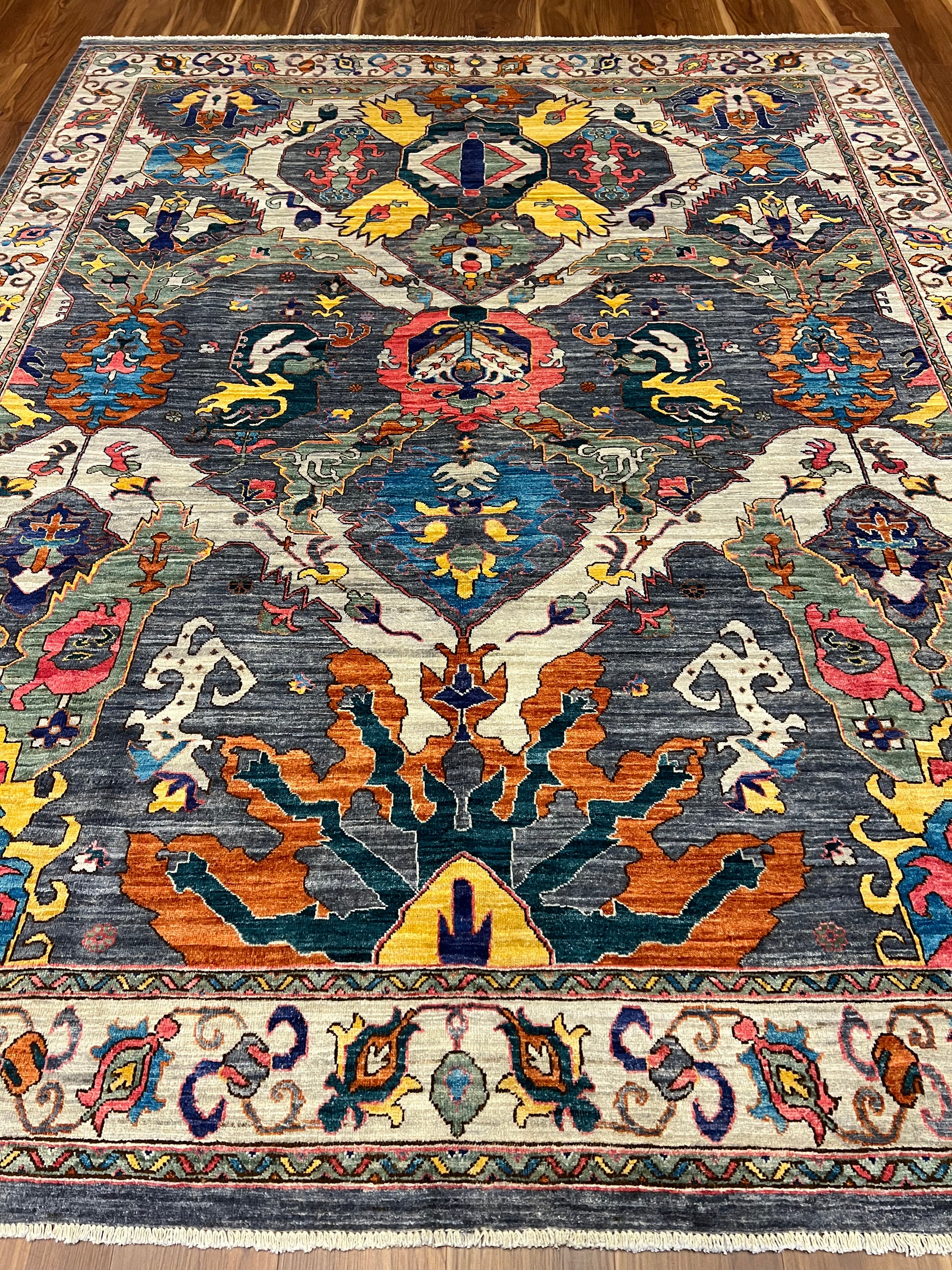 The Mystique Bidjar rug is a captivating piece that exudes timeless elegance and exceptional craftsmanship. Made of the finest wool, its intricate design features classical motifs and a harmonious blend of rich colors, including blue, gold, and crimson. The detailed patterns are reminiscent of traditional Persian artistic heritage, making it a profound addition to any decor seeking a touch of sophistication and historical charm. Measuring impeccably, this rug is as durable as it is beautiful, destined to become a cherished heirloom.
