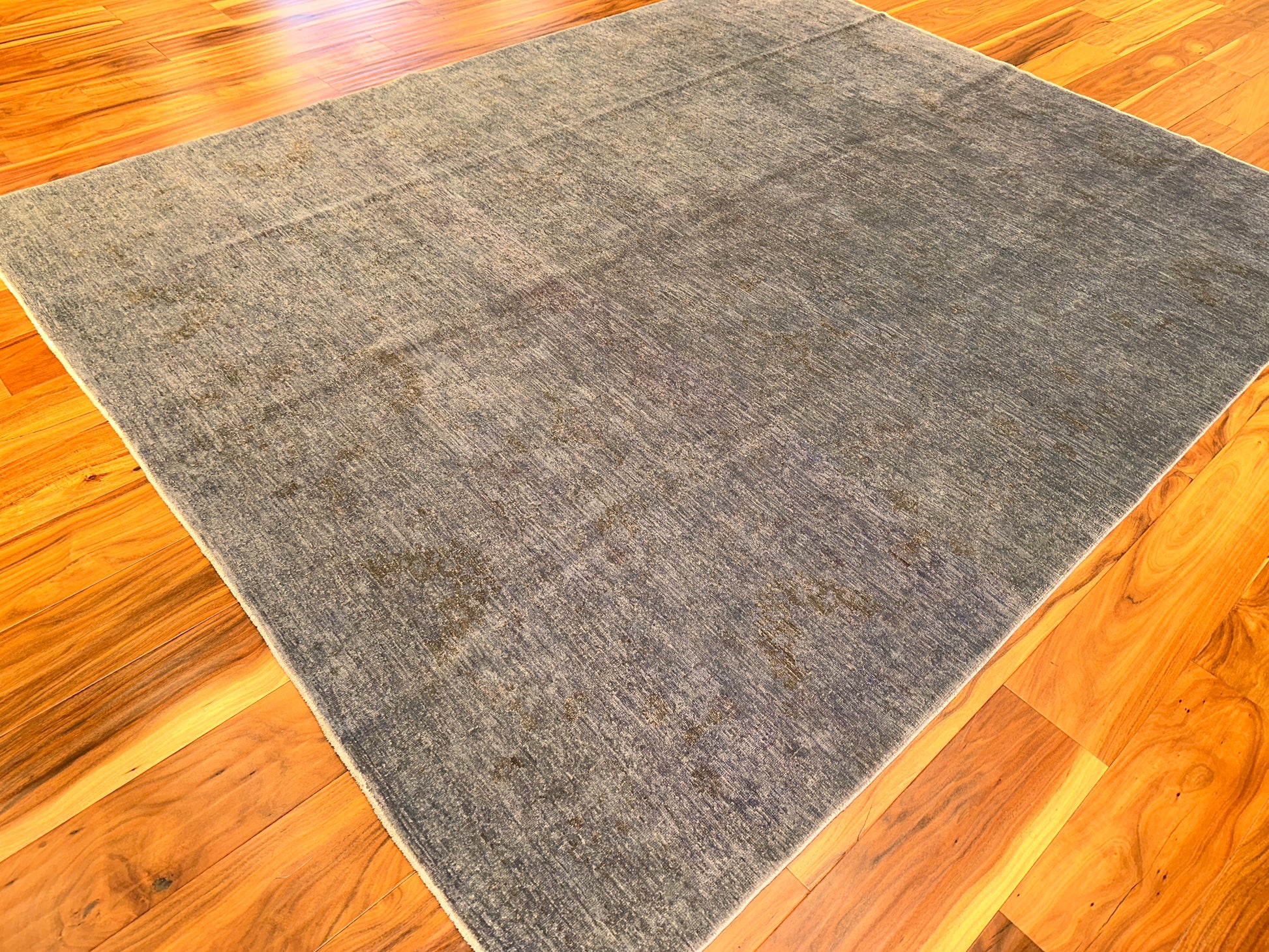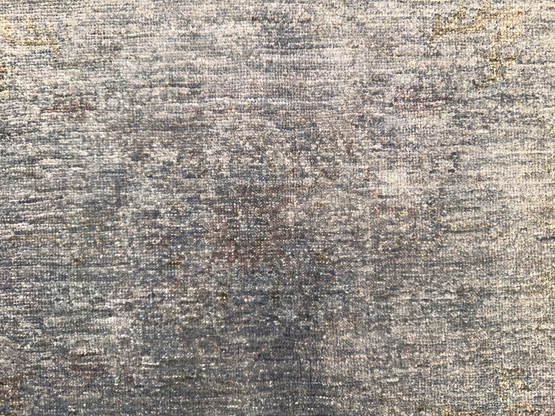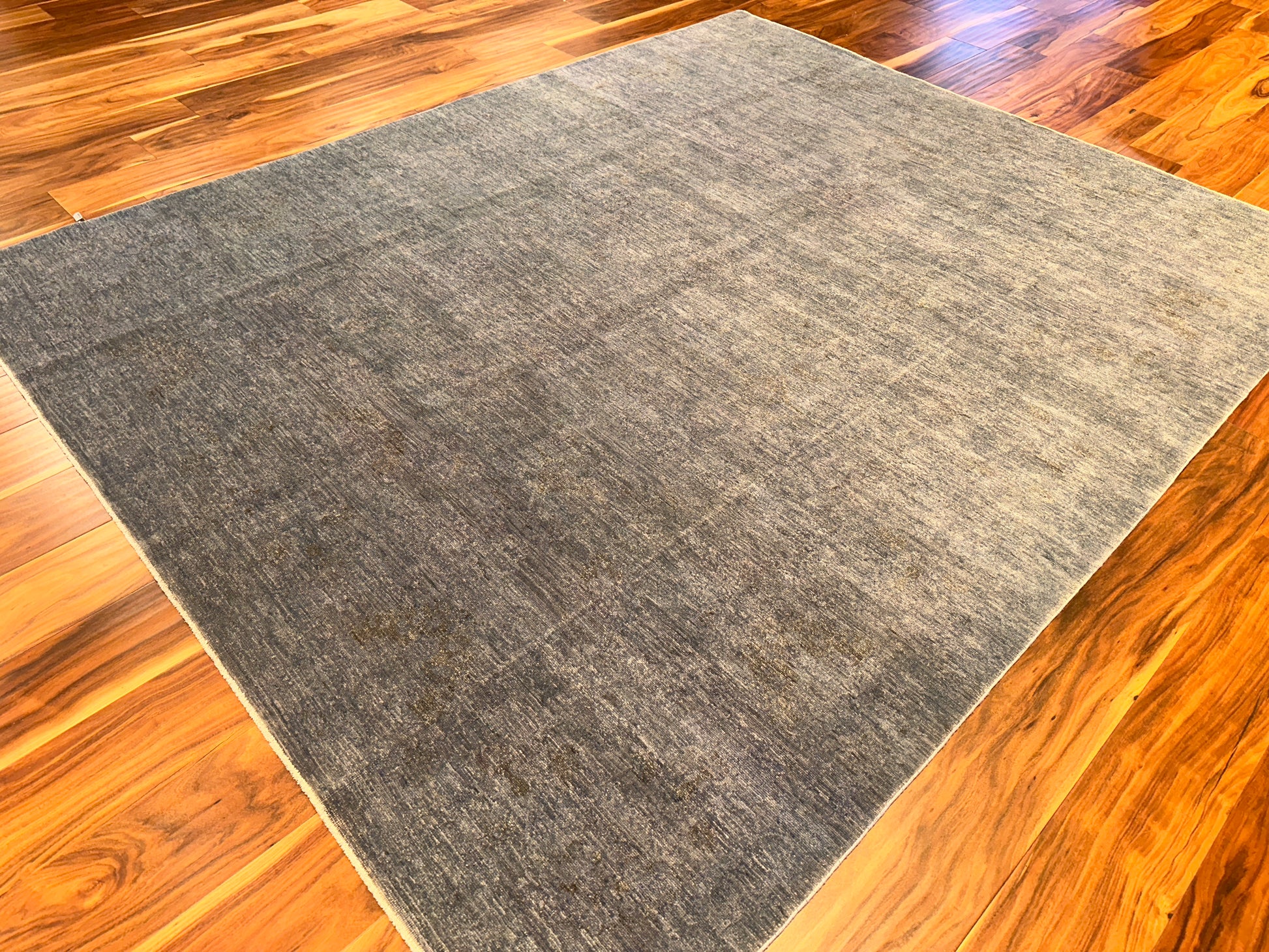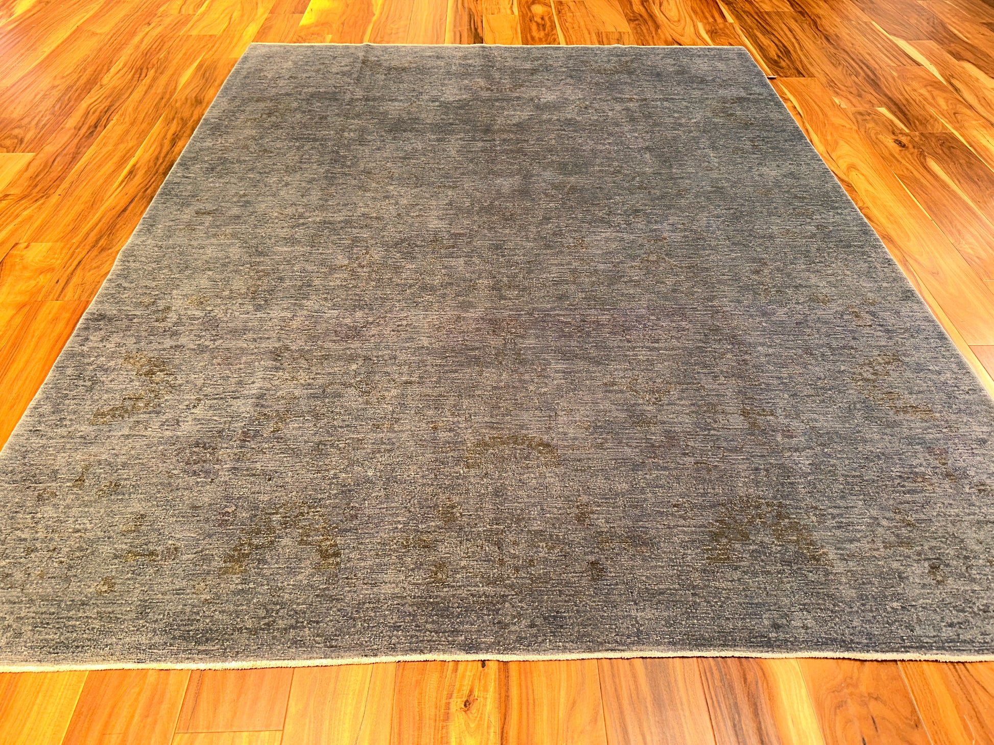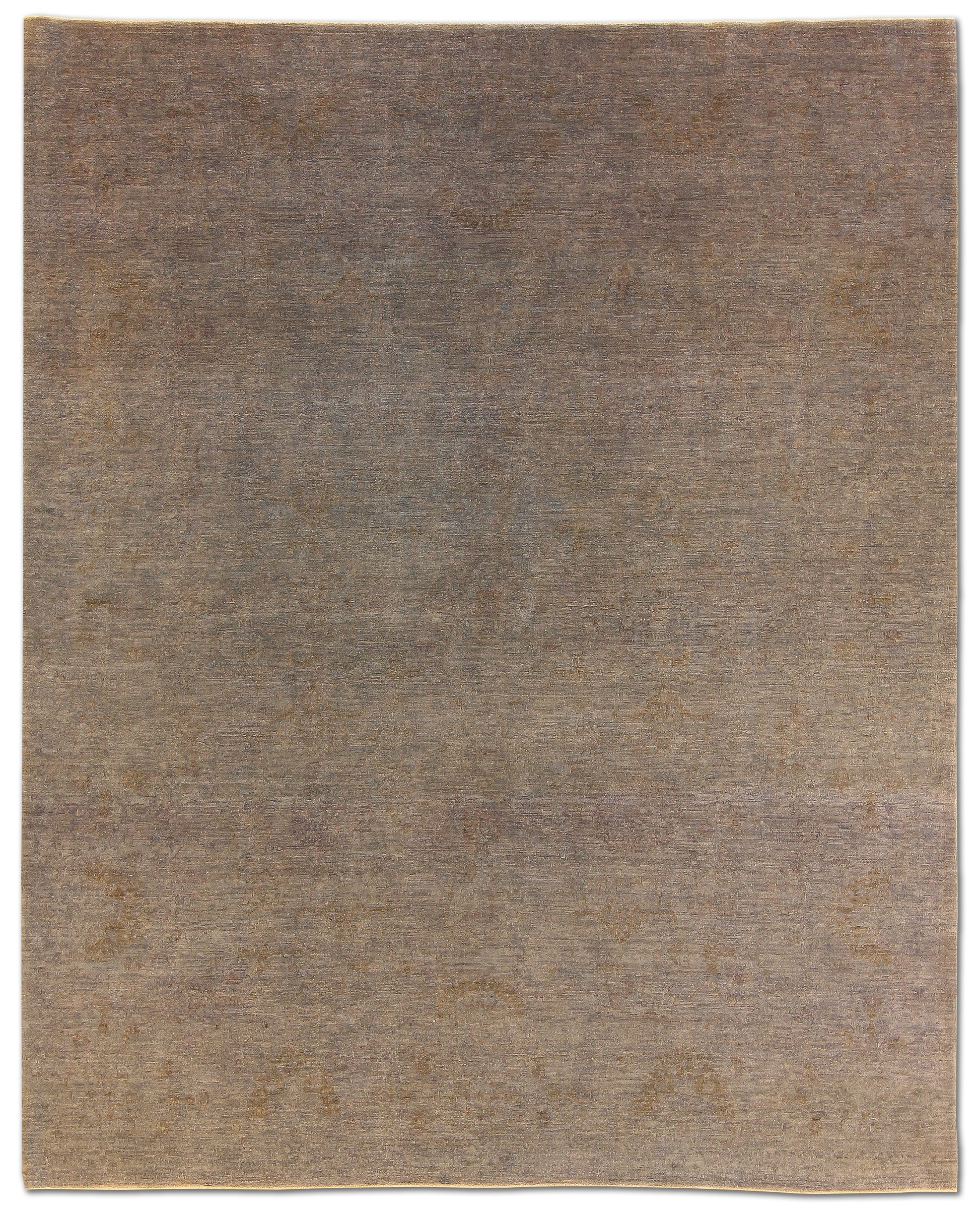 This understated rug reveals its beauty in the subtlest of ways, with a smoky slate ground softened by gentle hints of olive, taupe, and faded gold. A faint allover floral pattern is woven just beneath the surface, giving the piece a ghosted elegance that emerges only upon closer look. Its calm presence makes it a refined foundation for curated, serene interiors.
