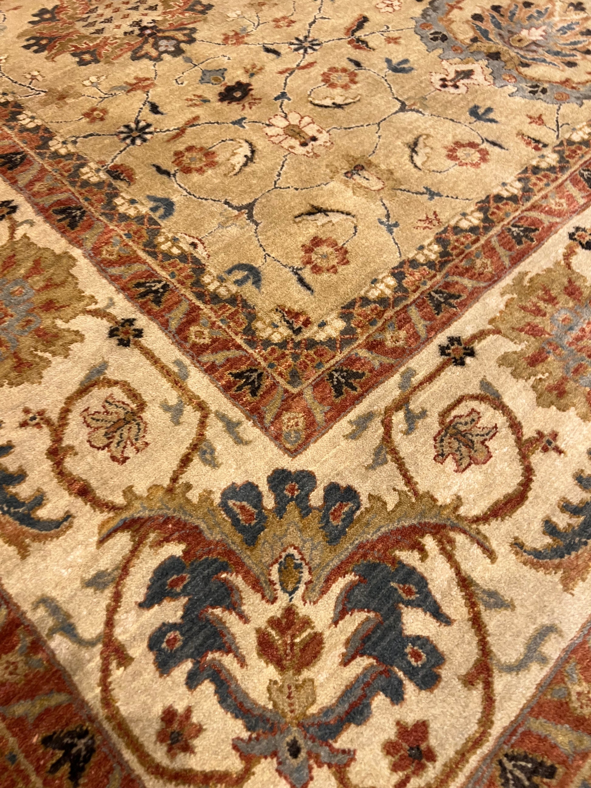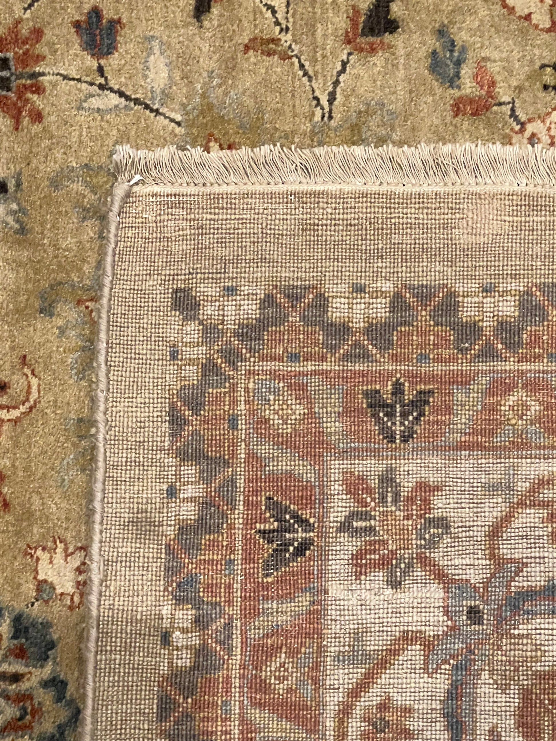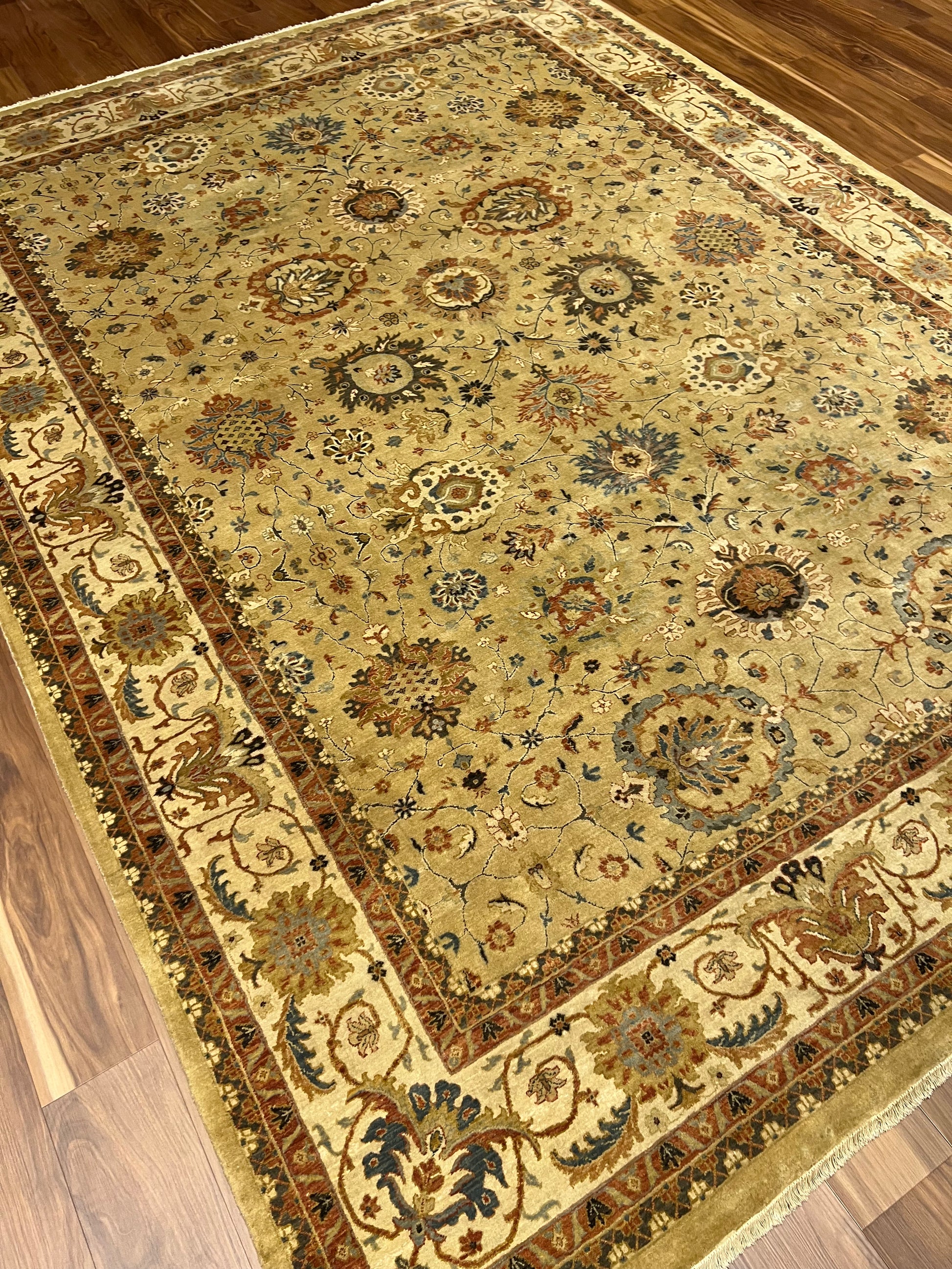 Exemplifying a classic charm with its intricate floral patterns and a rich color palette, this Sultanabad rug is handwoven from the finest wool. The all-over design features an array of palmettes, vine scrolls, and floral motifs, harmoniously blended to create a stunning piece that pays homage to the historical weaving traditions of Sultanabad. The beige background is thoughtfully contrasted with brown and orange details, encapsulating a sense of warmth and elegance. Ideal for adding a touch of timeless sophistication to any living space.