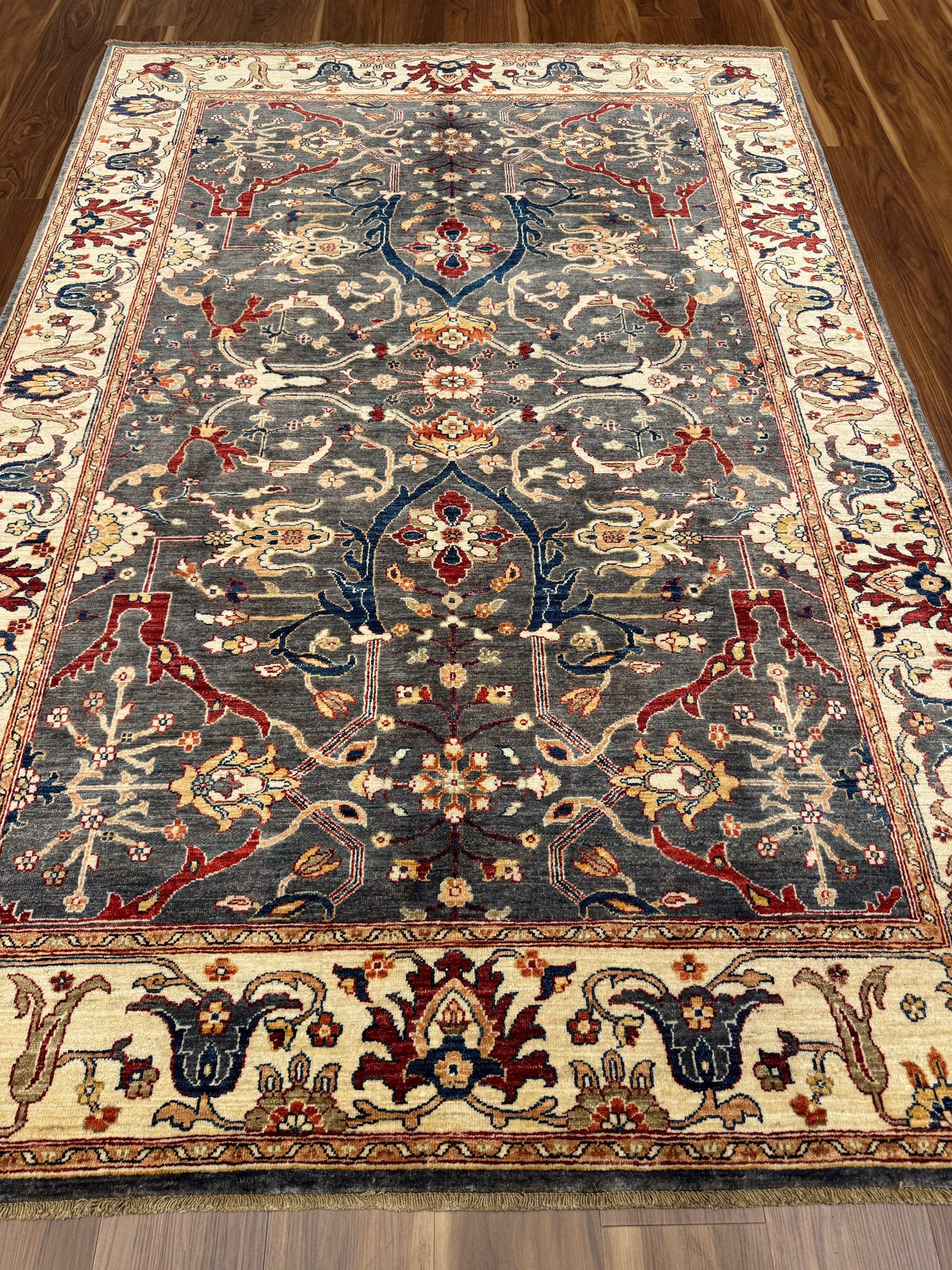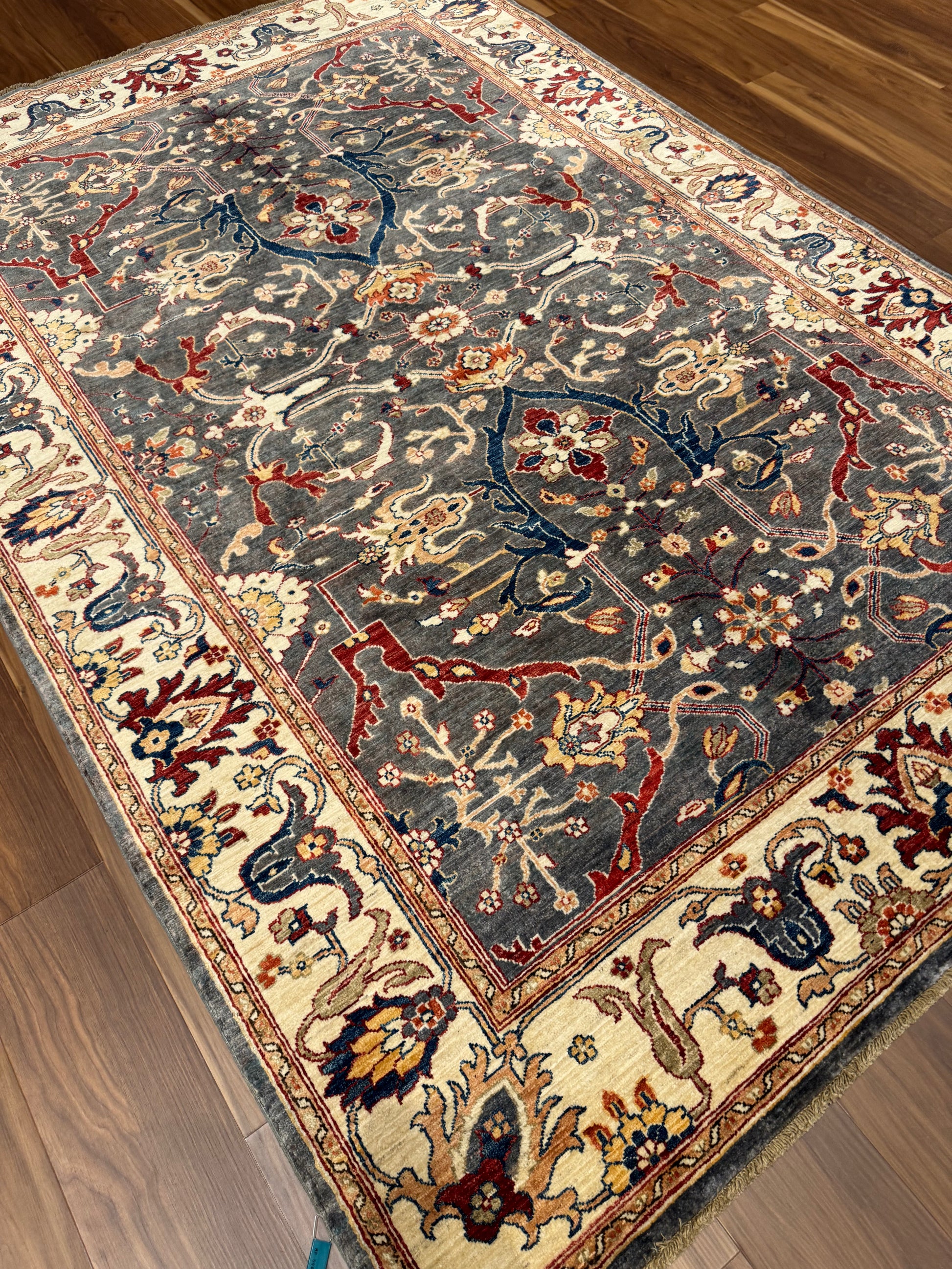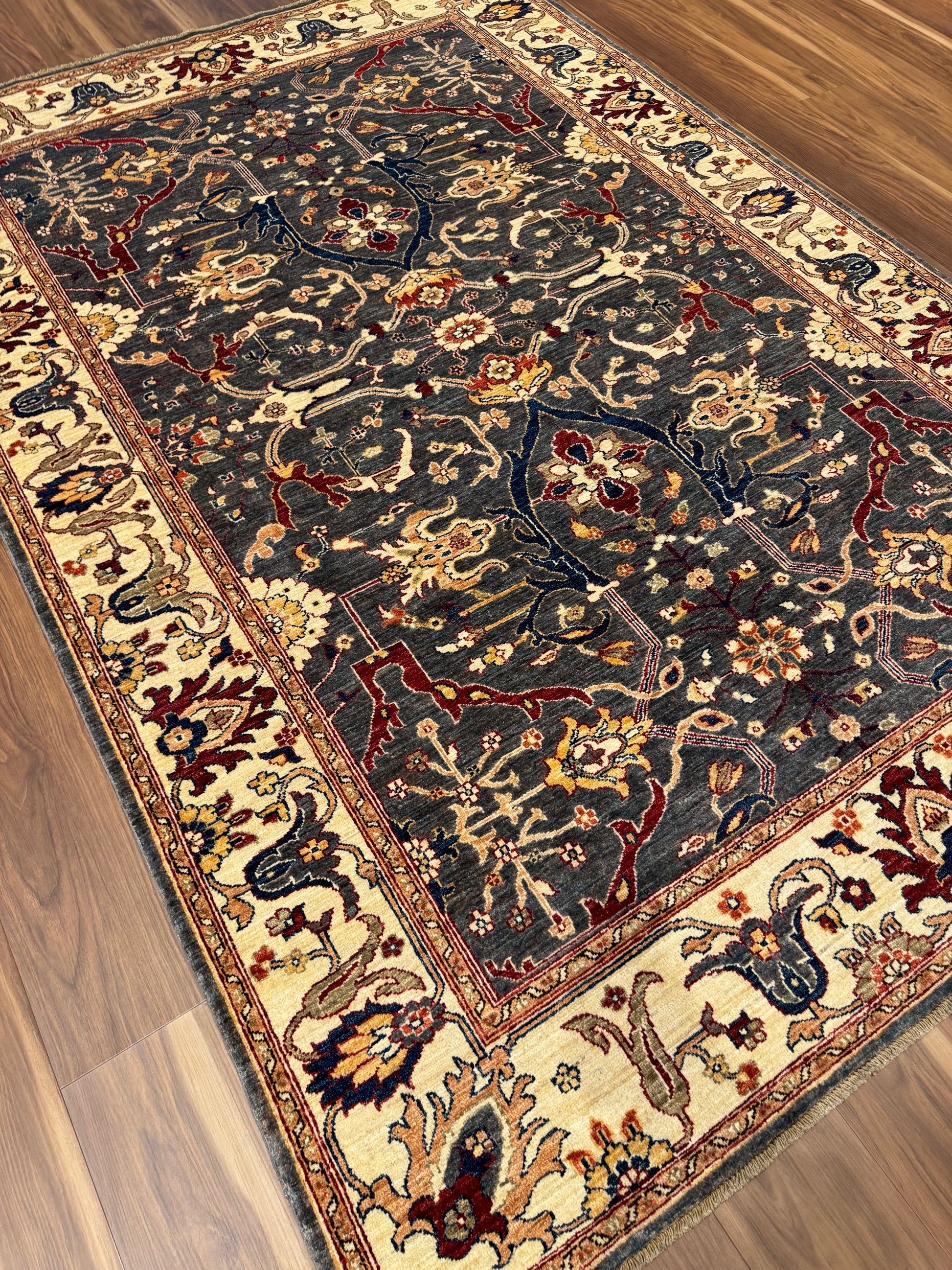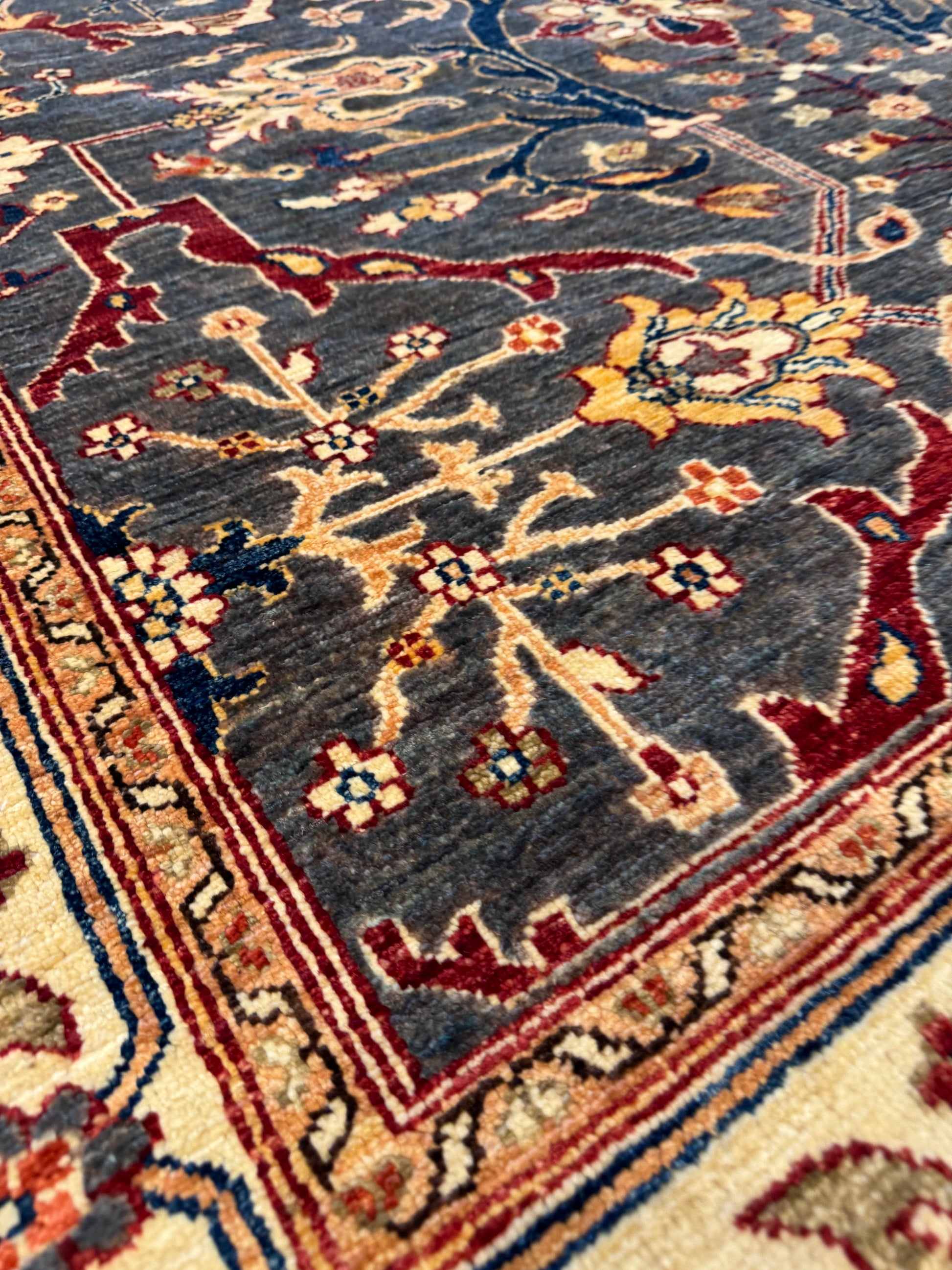 This exquisite Sultanabad rug showcases an intricate traditional design with lush botanical motifs and elegant medallions that hark back to the grandeur of Persian court aesthetics. Handwoven from luxurious wool, it boasts a deep, rich color palette that accentuates the sophisticated patterns which lend a timeless elegance to any room. Measuring generously, this rug promises a soft, durable surface, enhancing the comfort and style of high traffic living spaces or formal areas.