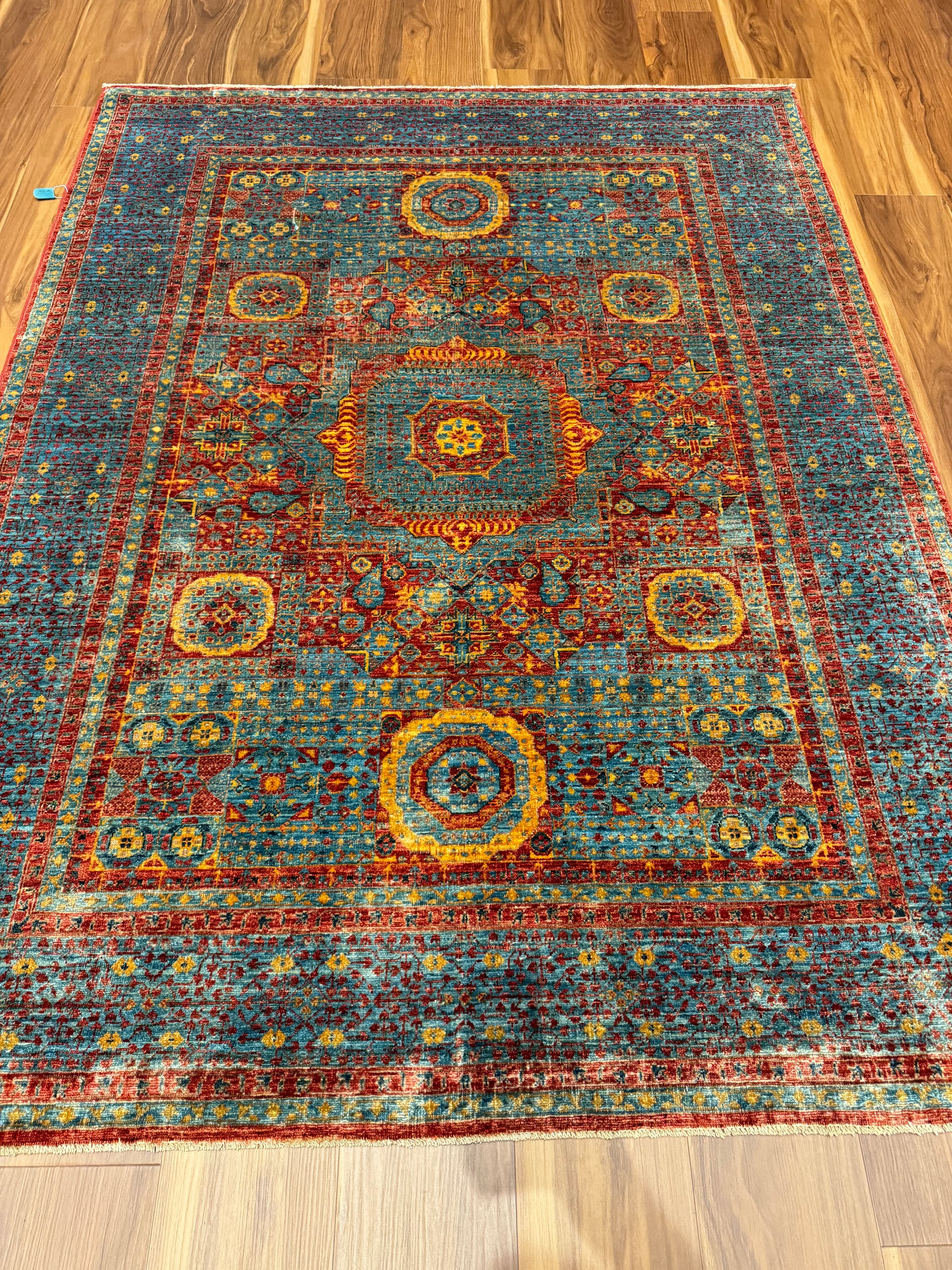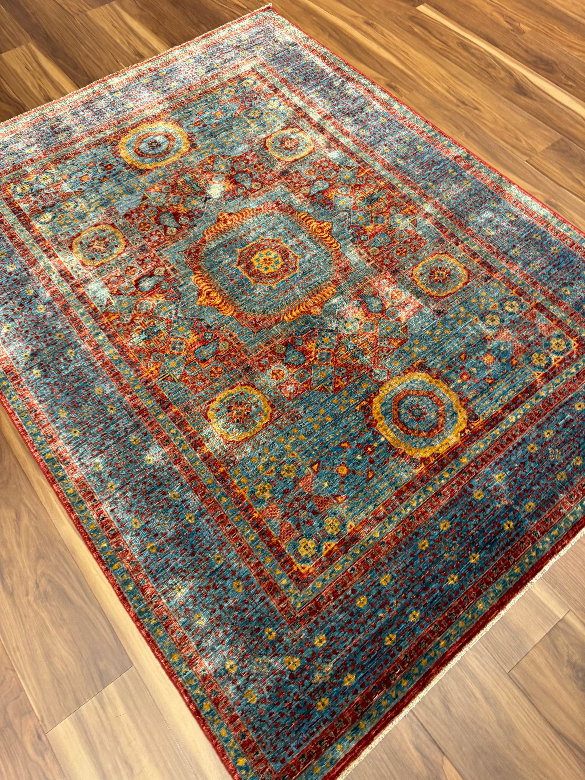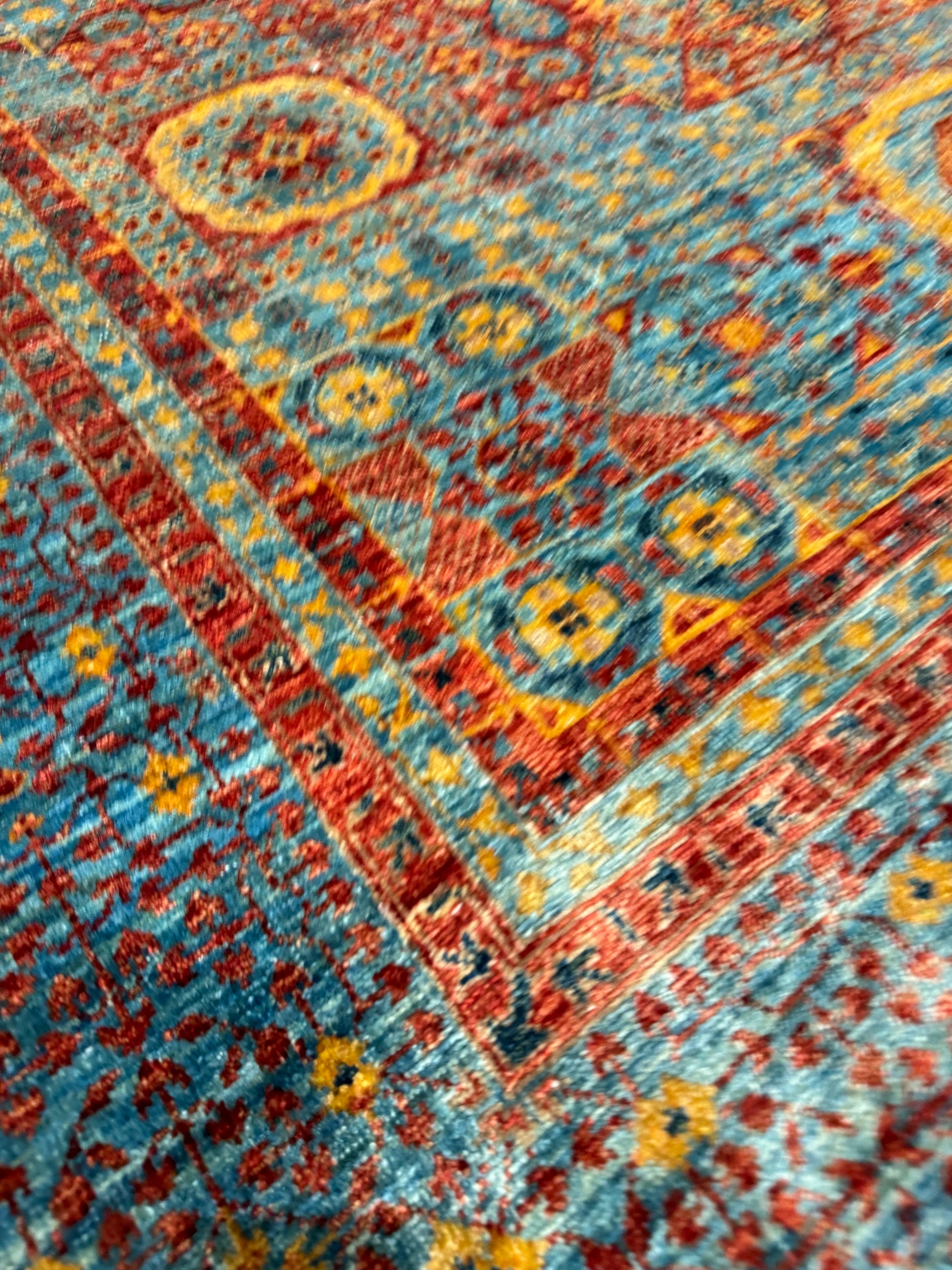 The Sultanate Mamluk rug is a masterpiece of traditional craftsmanship, echoing the rich heritage of Mamluk design. Woven with high-quality wool, this rug features intricate geometric patterns and a medley of vibrant colors, including reds, blues, and oranges, that bring a warm, sophisticated ambiance to any room. The balanced composition and ornate borders showcase the artistry that has been carried through generations, making it a timeless addition to both modern and classic interiors.