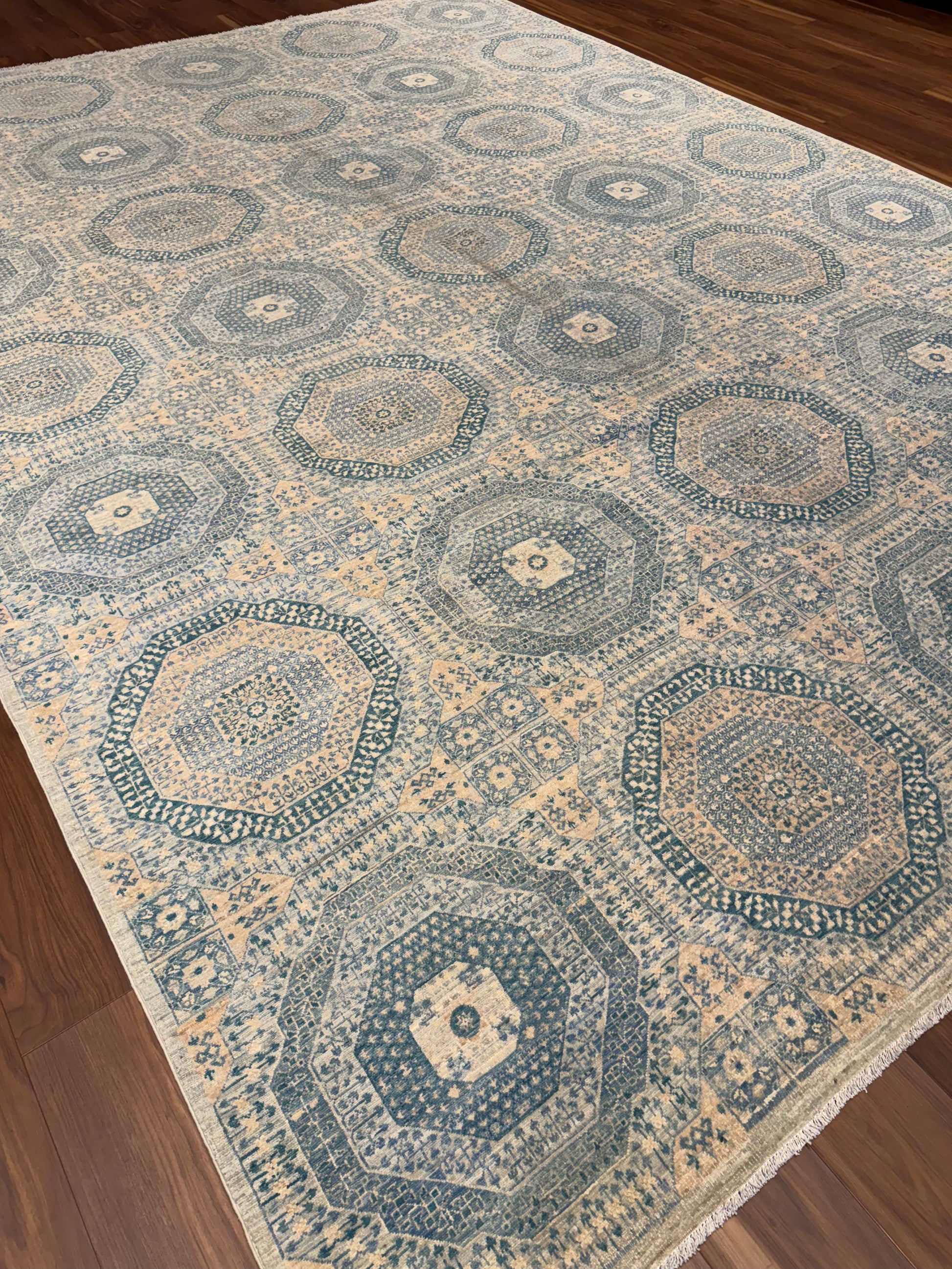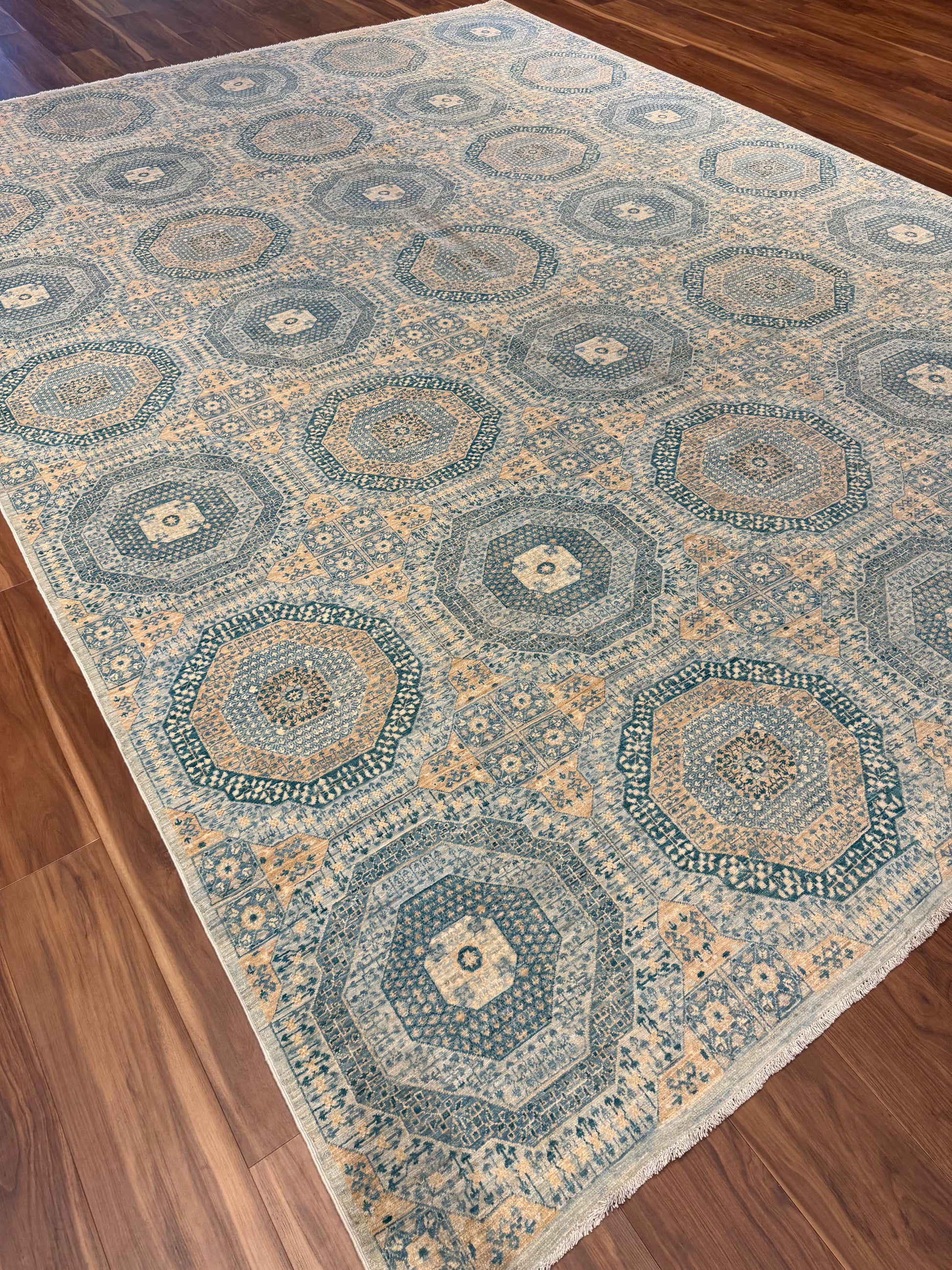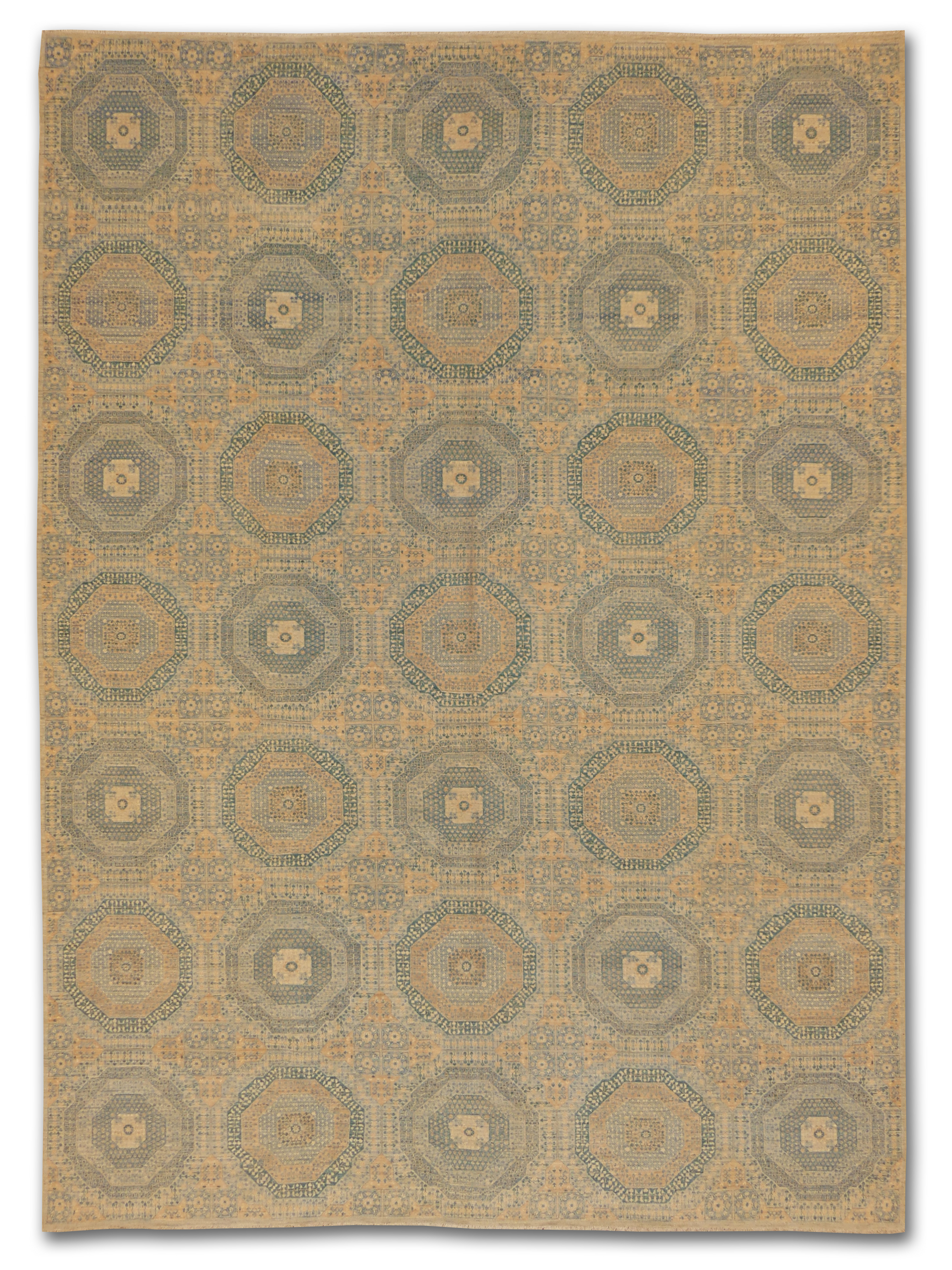 The 'Sultanate Mamluk' exudes a sense of time-honored elegance, featuring an intricate pattern of interlocking geometric shapes and borders. This handcrafted wool rug celebrates the artistry of traditional Mamluk designs, with a muted color palette that enhances its versatility. Perfect for adding warmth and historical charm to any space, this piece is a testament to the skilled artisans who preserve age-old weaving techniques.