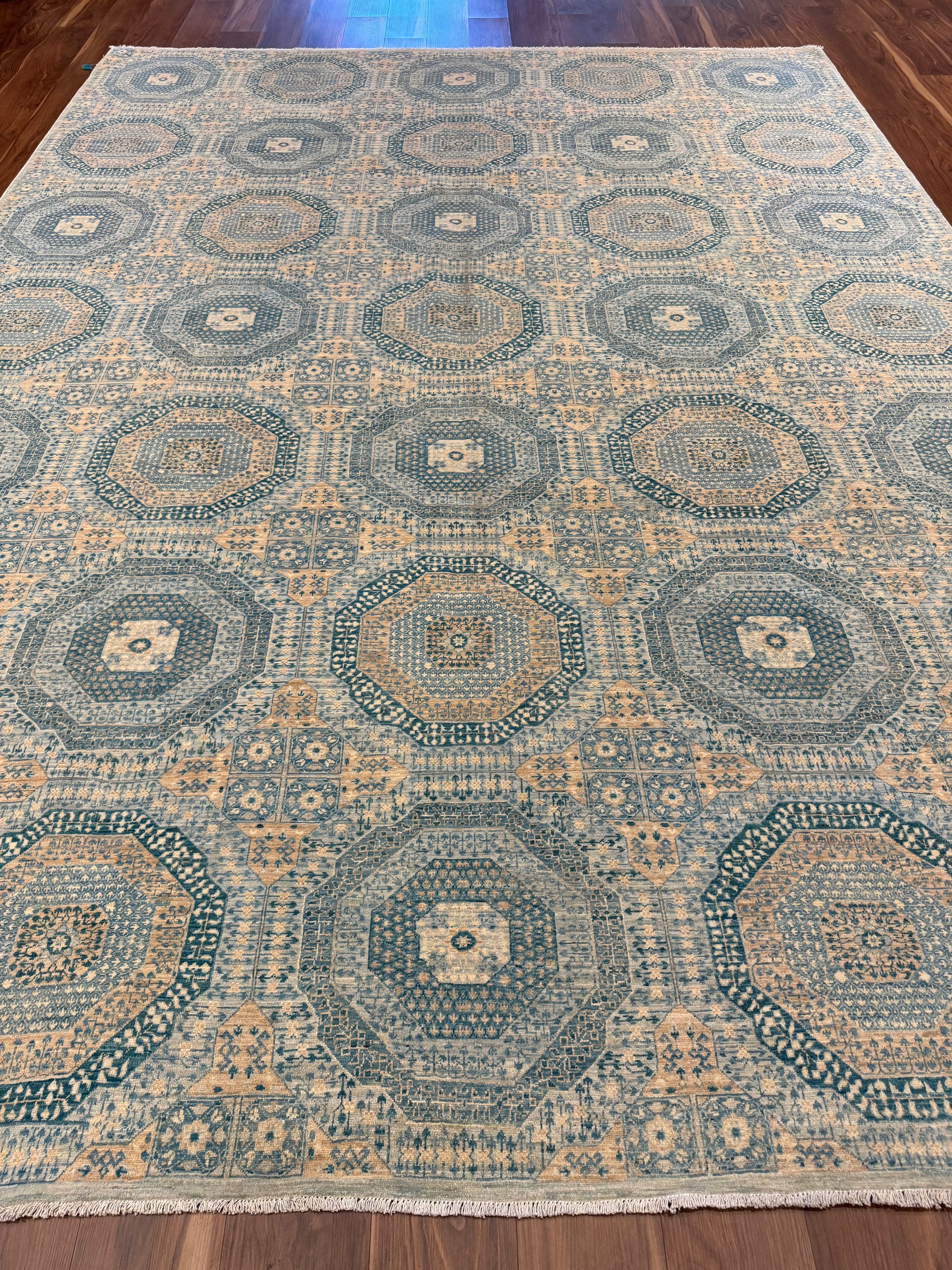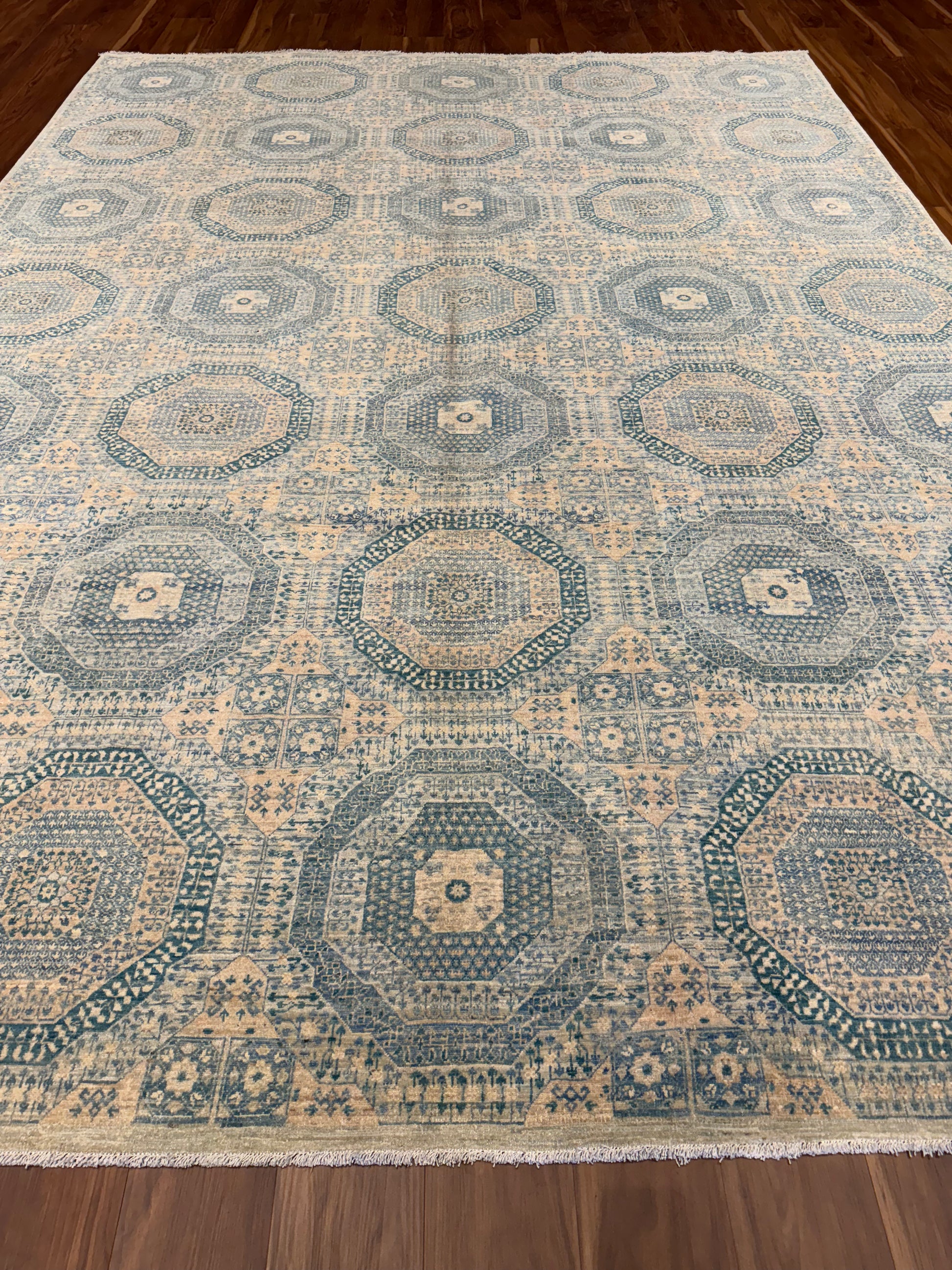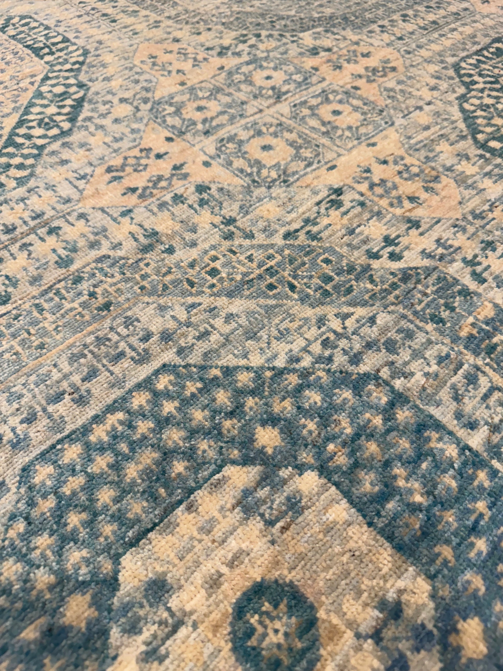 The 'Sultanate Mamluk' exudes a sense of time-honored elegance, featuring an intricate pattern of interlocking geometric shapes and borders. This handcrafted wool rug celebrates the artistry of traditional Mamluk designs, with a muted color palette that enhances its versatility. Perfect for adding warmth and historical charm to any space, this piece is a testament to the skilled artisans who preserve age-old weaving techniques.