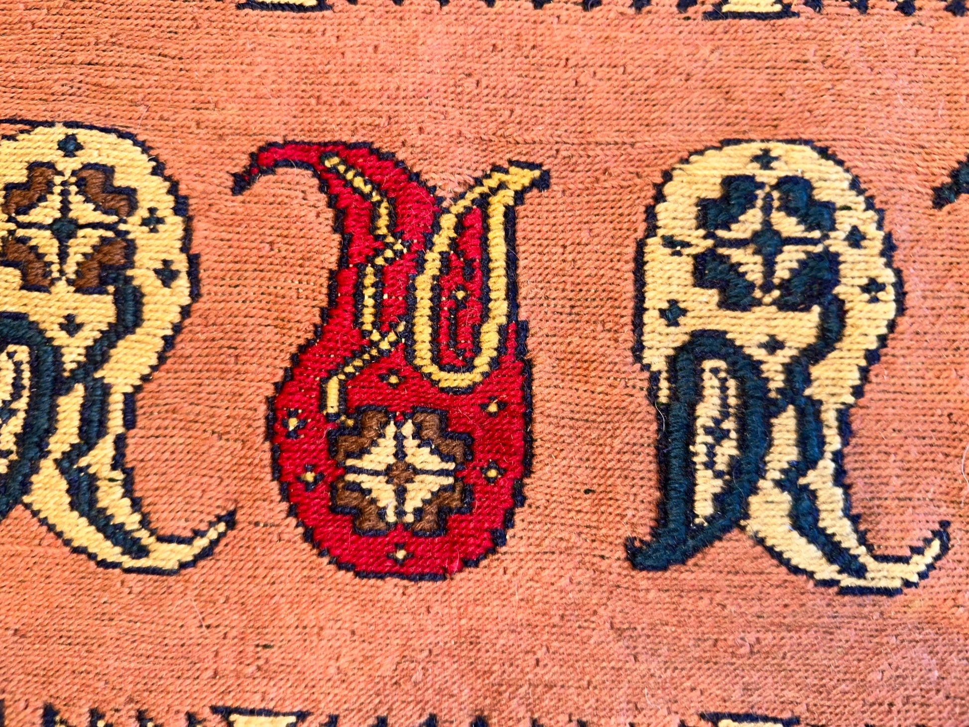 - Design: Repeating paisleys and tribal medallions within a decorative border