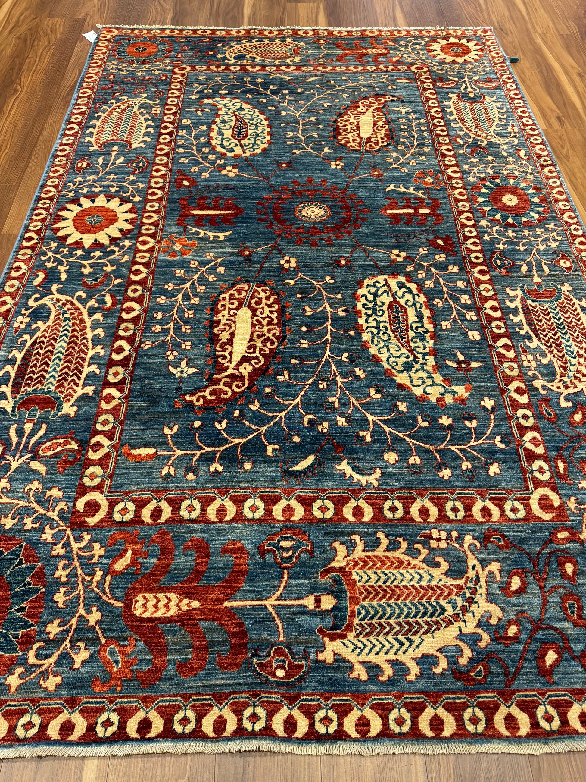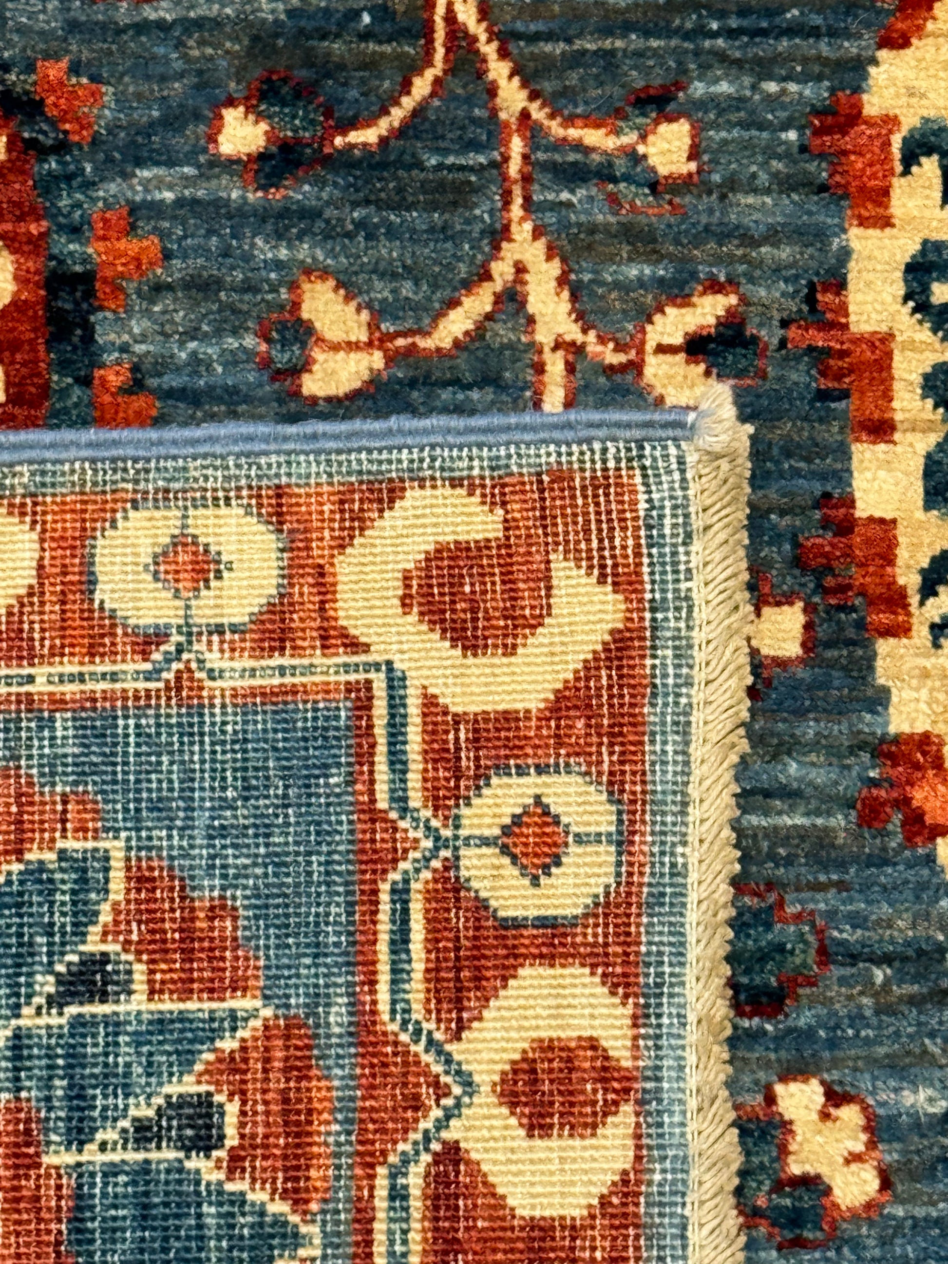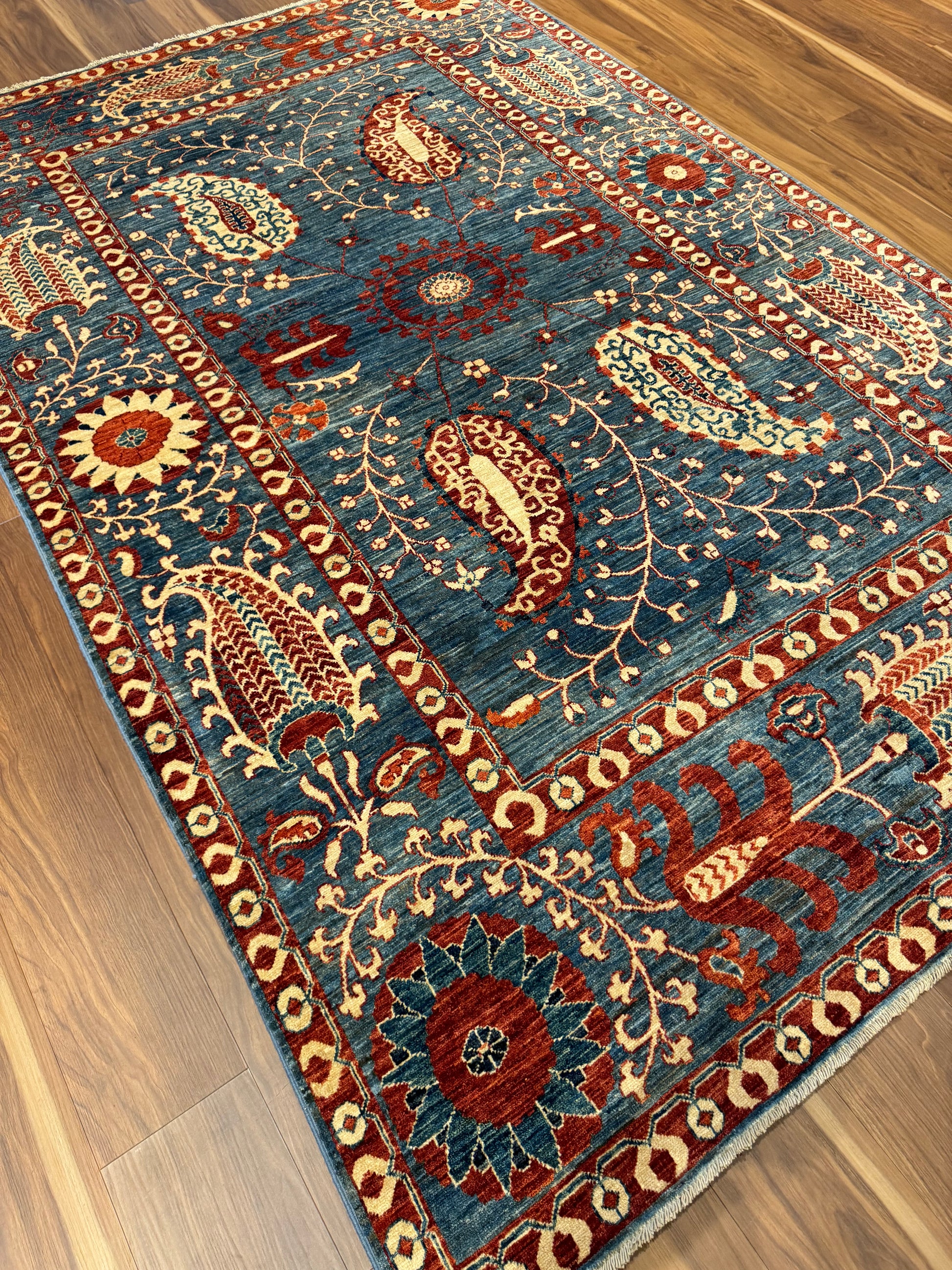 This exquisite Suzanni rug showcases intricate patterns and a captivating design that reflects its Central Asian origins. Crafted from high-quality wool, it features vibrant shades of navy blue and rust, accented with touches of gold. The rug's motifs include stylized florals and botanical elements, presented in a symmetrical layout that exudes elegance and a timeless appeal. With its plush texture and durable construction, this piece is an ideal choice for bringing warmth and artisanal charm to any interior space, harmonizing with both classic and contemporary decors.