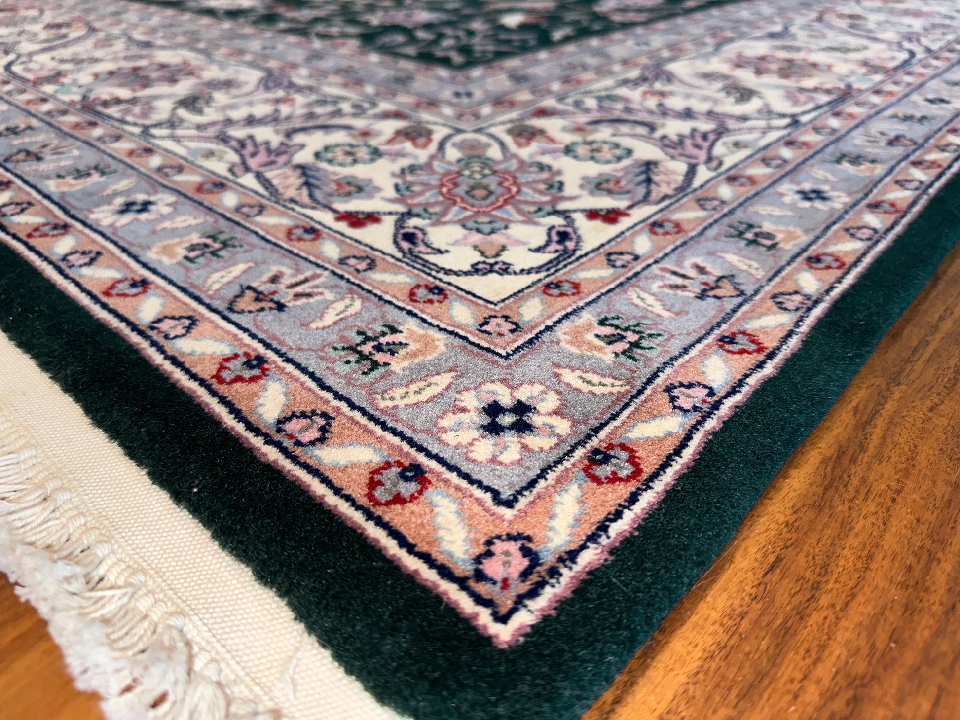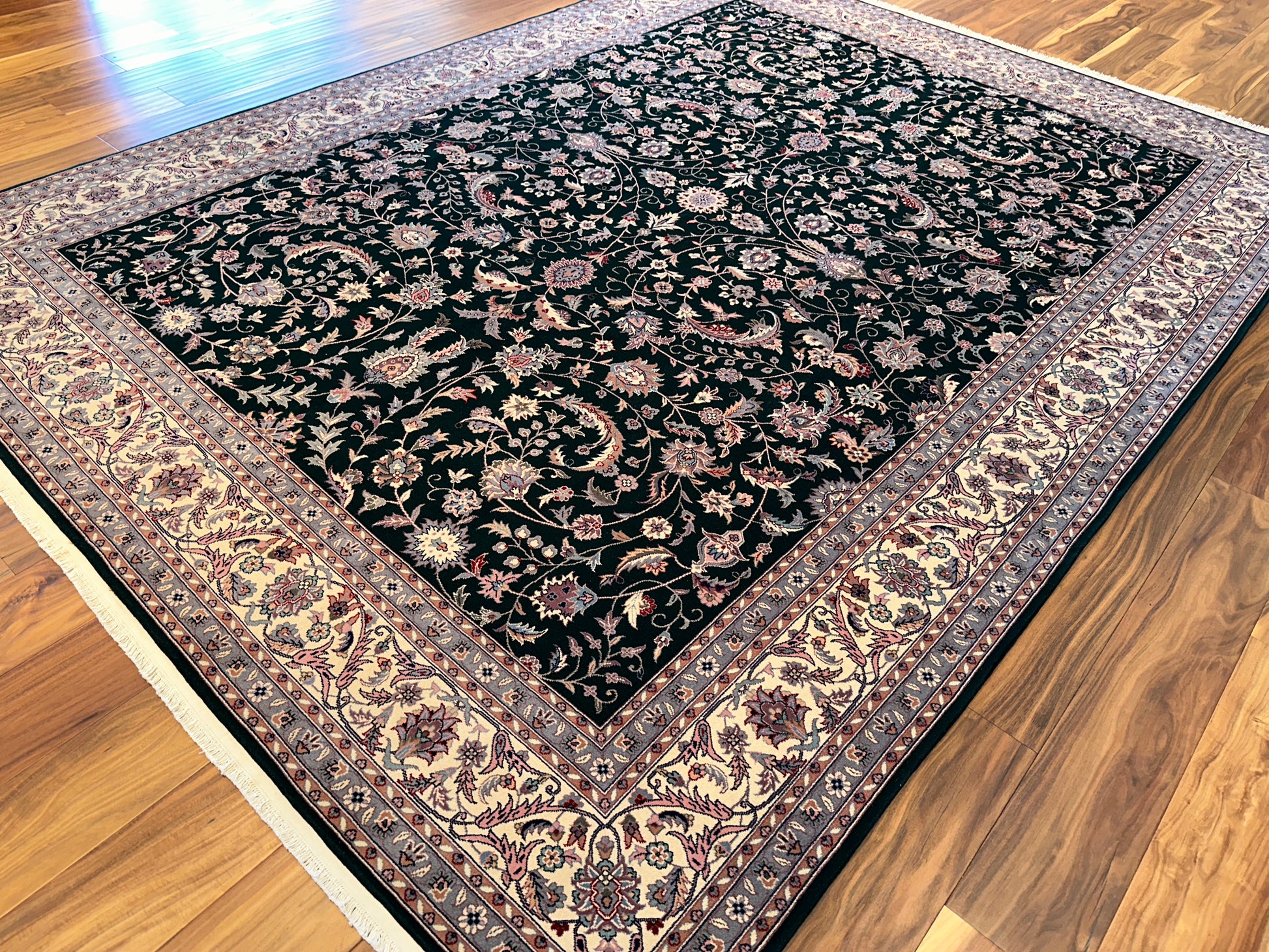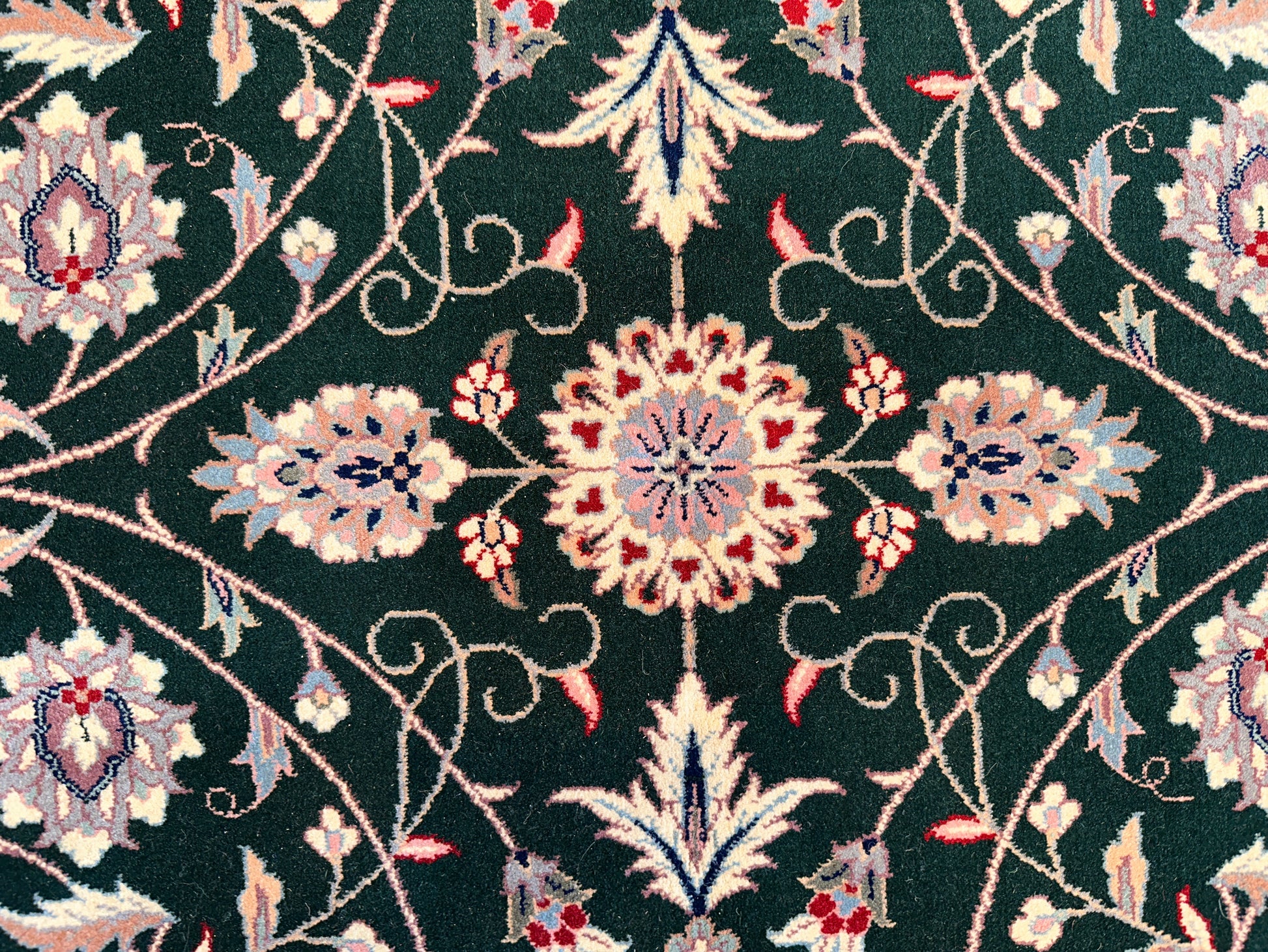 - Design: Classic Persian floral with central medallion flourish