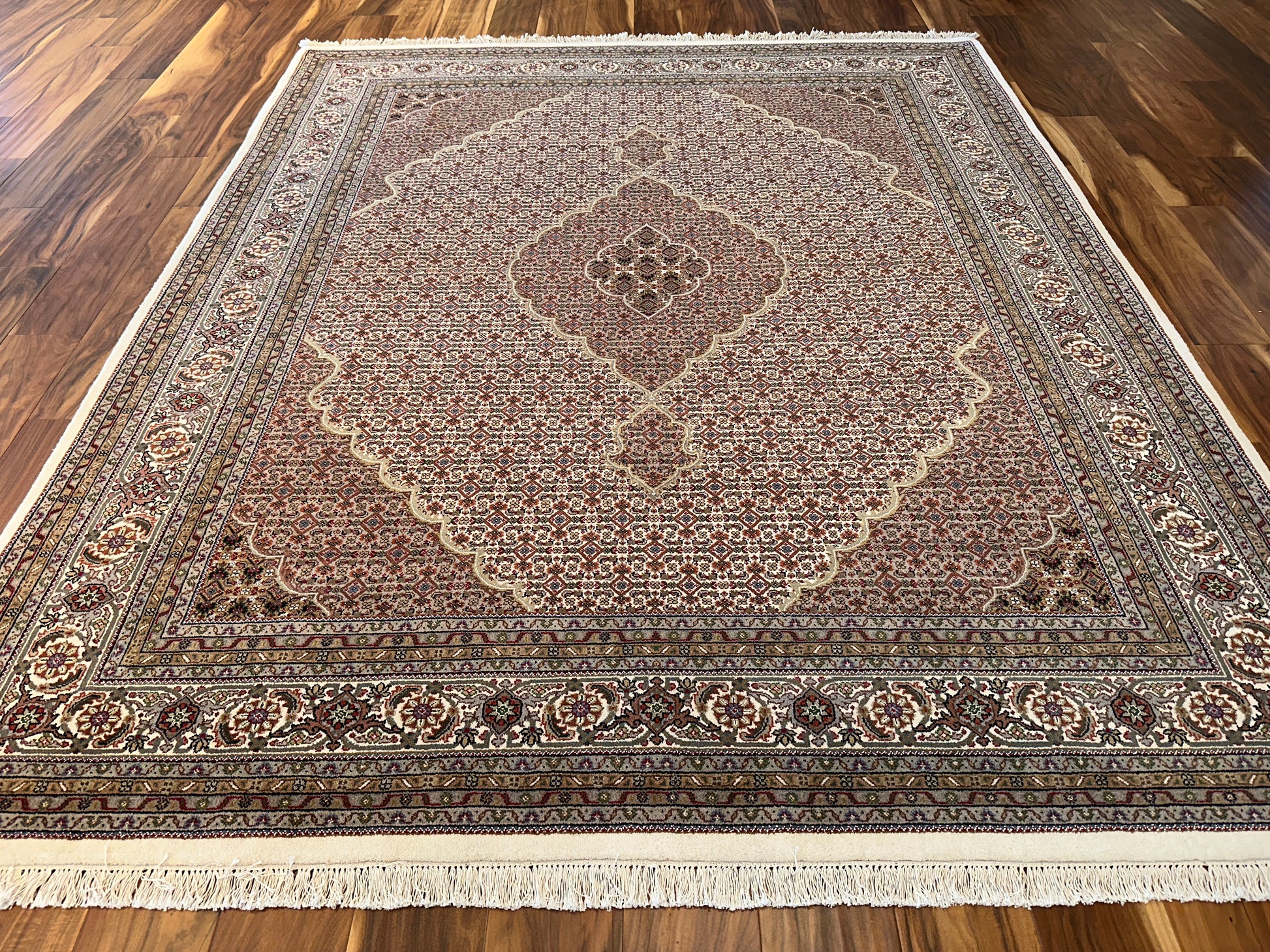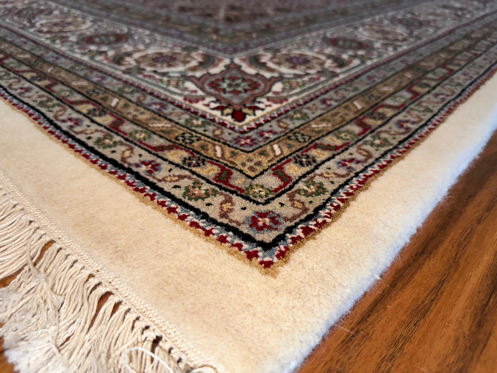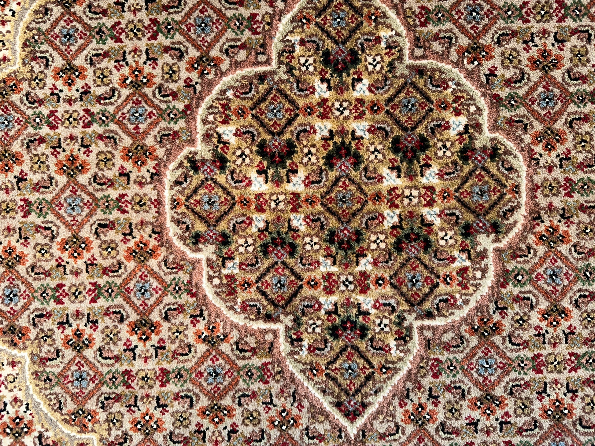 - Design: Central medallion with fine allover floral patterning and layered borders