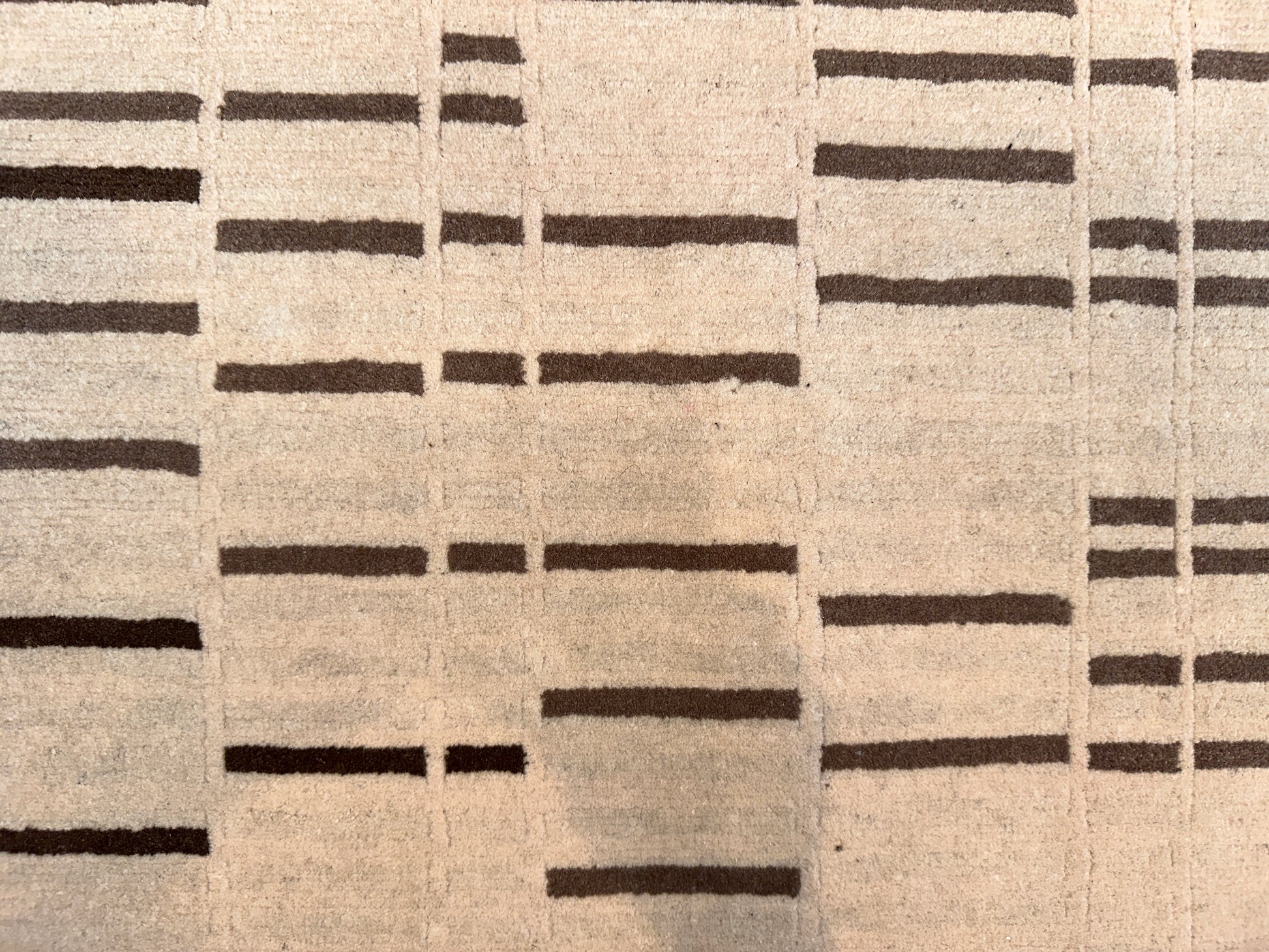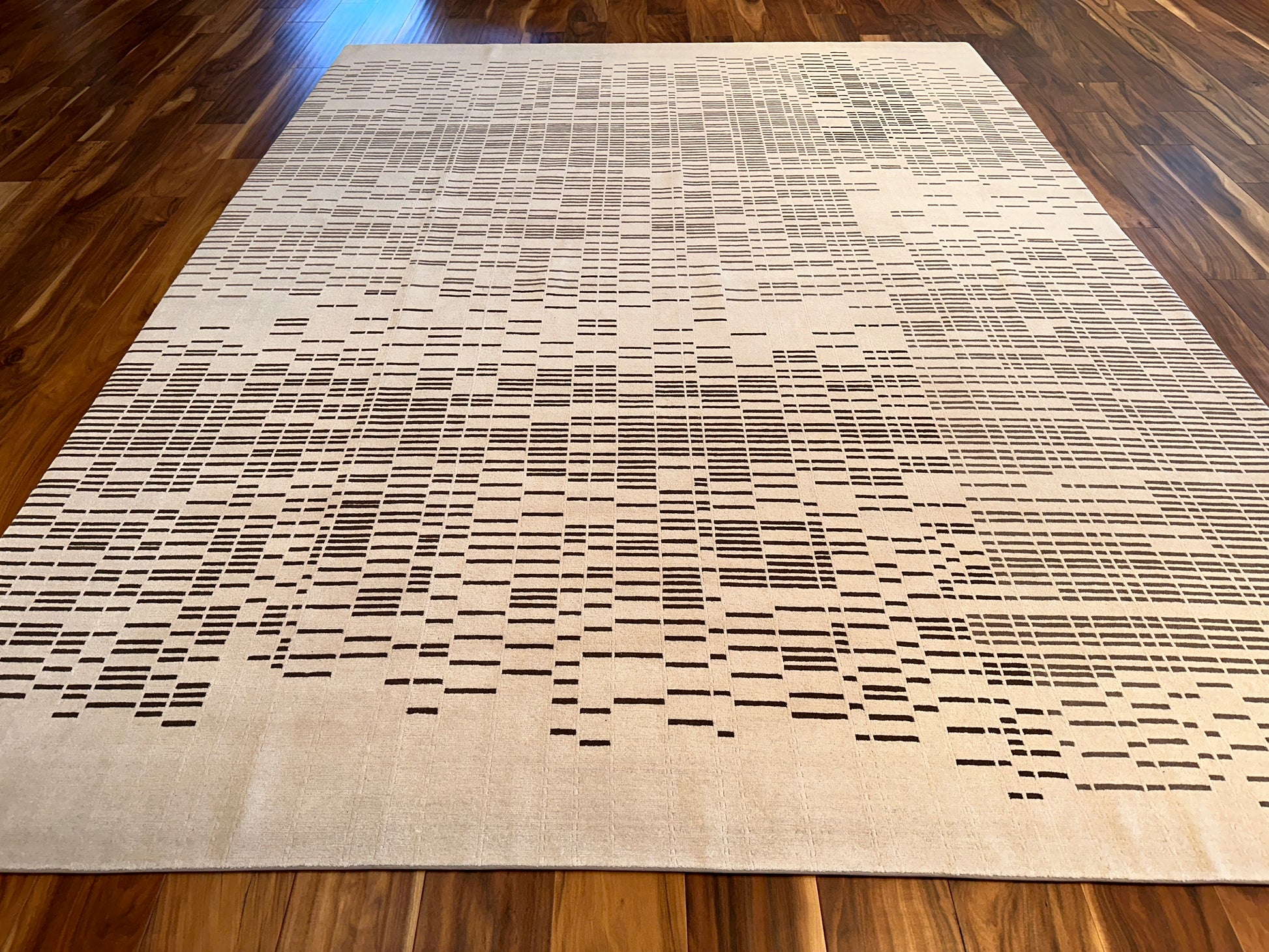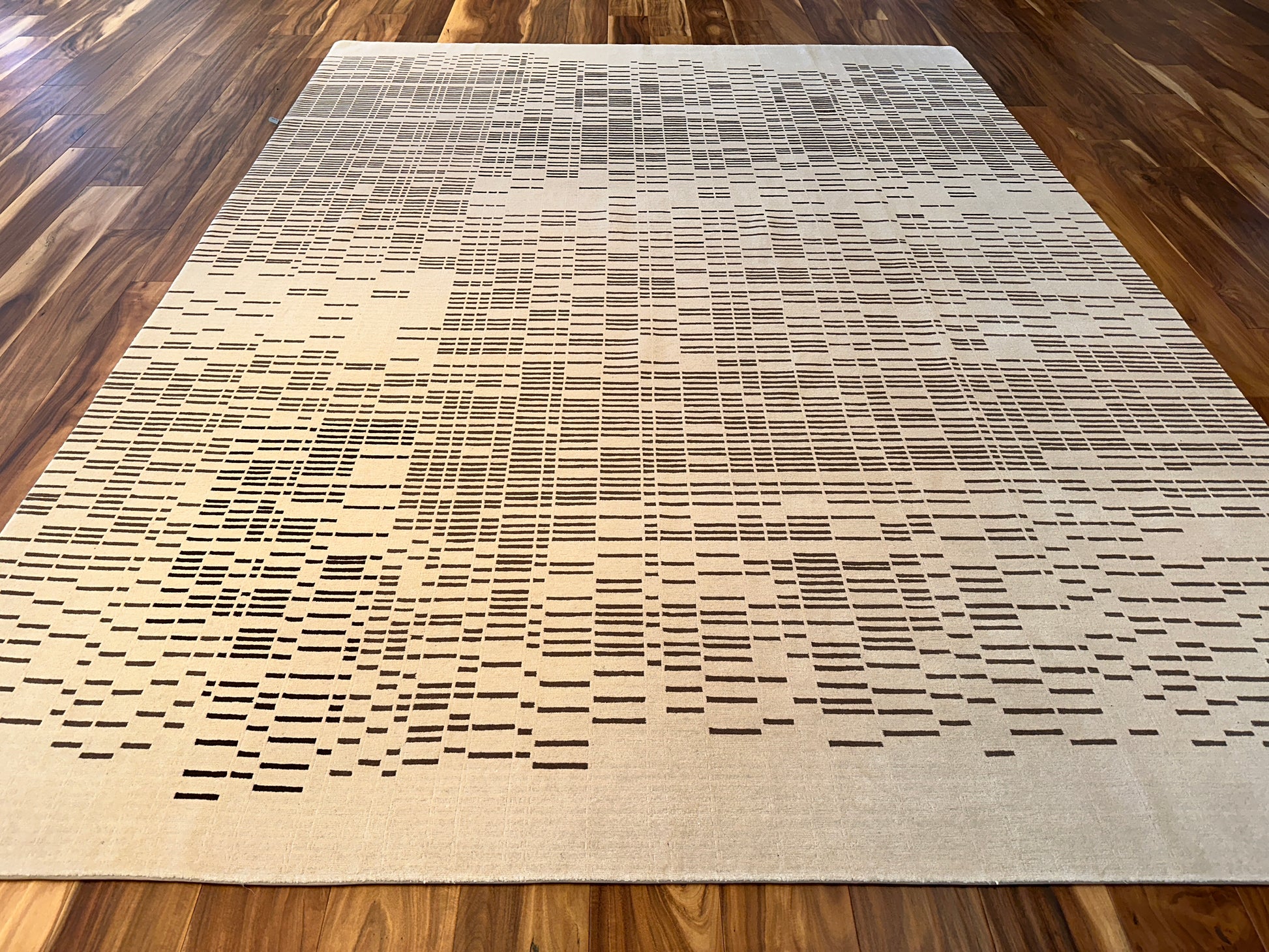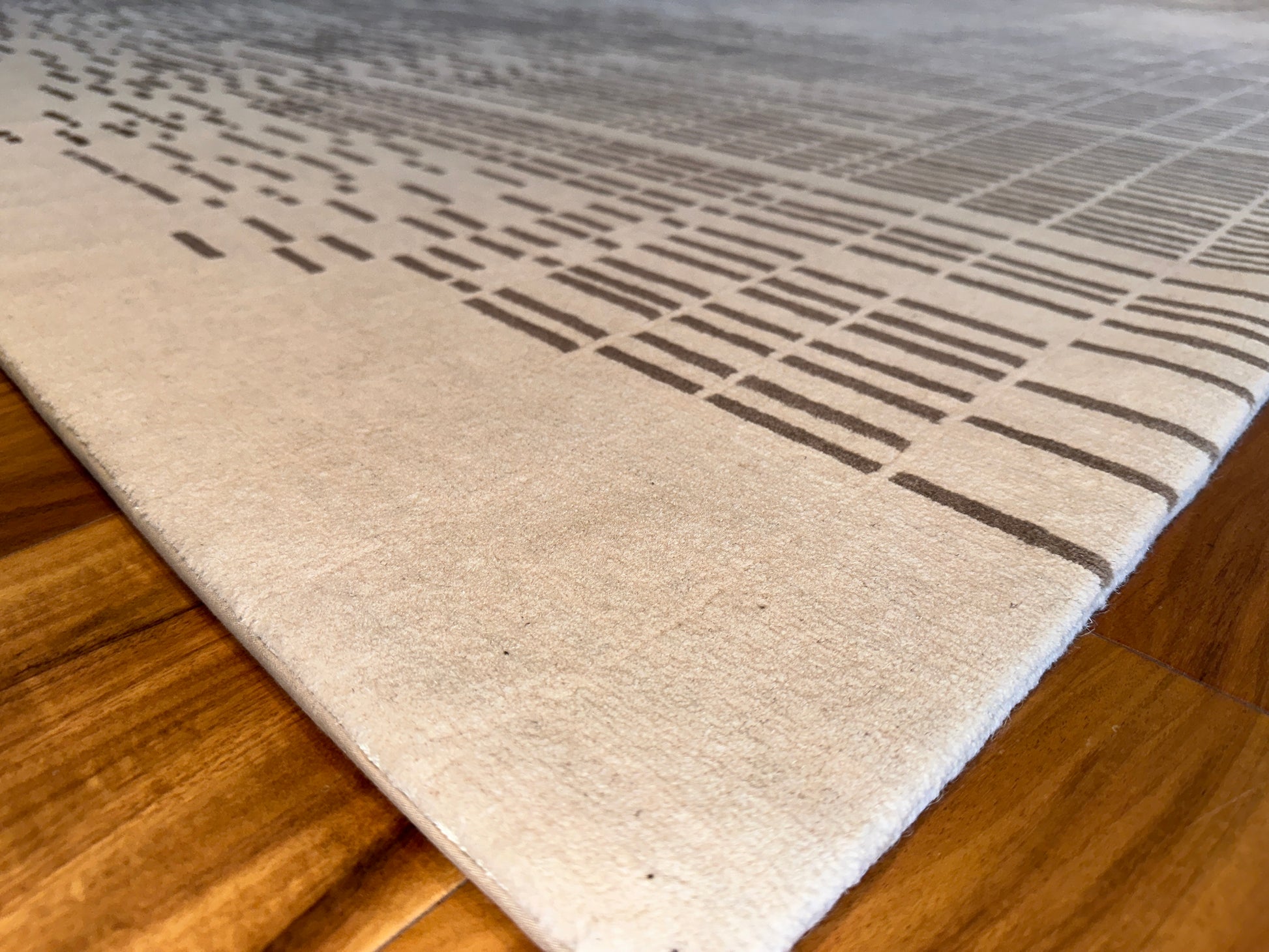 Elevate your space with this modern abstract area rug, featuring a sleek, abstract linear pattern inspired by digital design. With warm beige tones and minimalist brown accents, this modern rug adds a sophisticated touch to living rooms, dining areas, or offices. Durable, soft, and visually striking—perfect for contemporary interiors.
