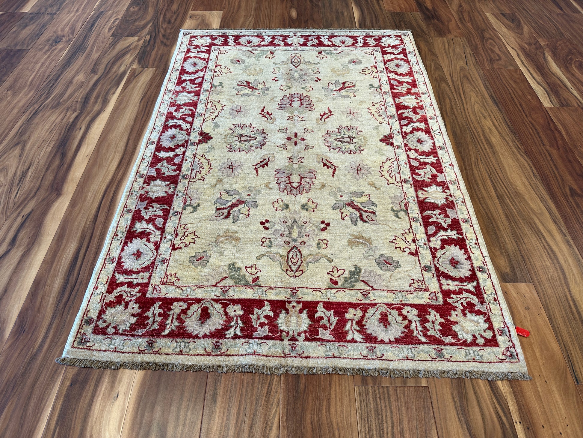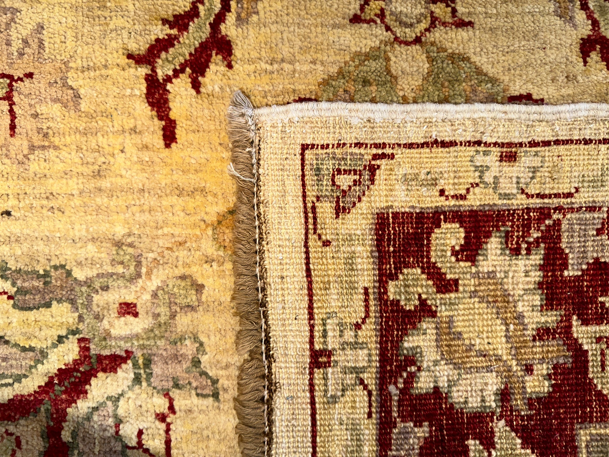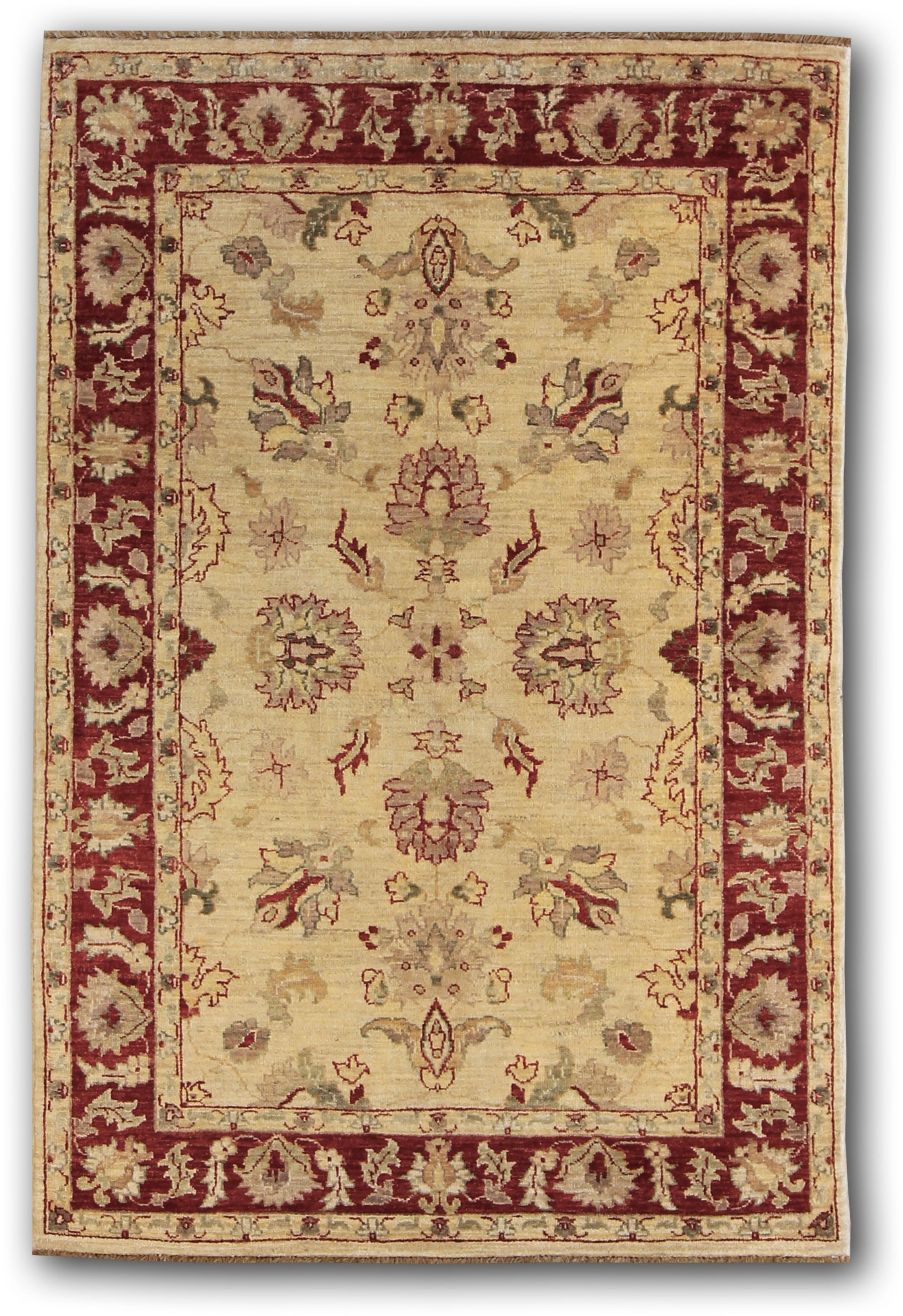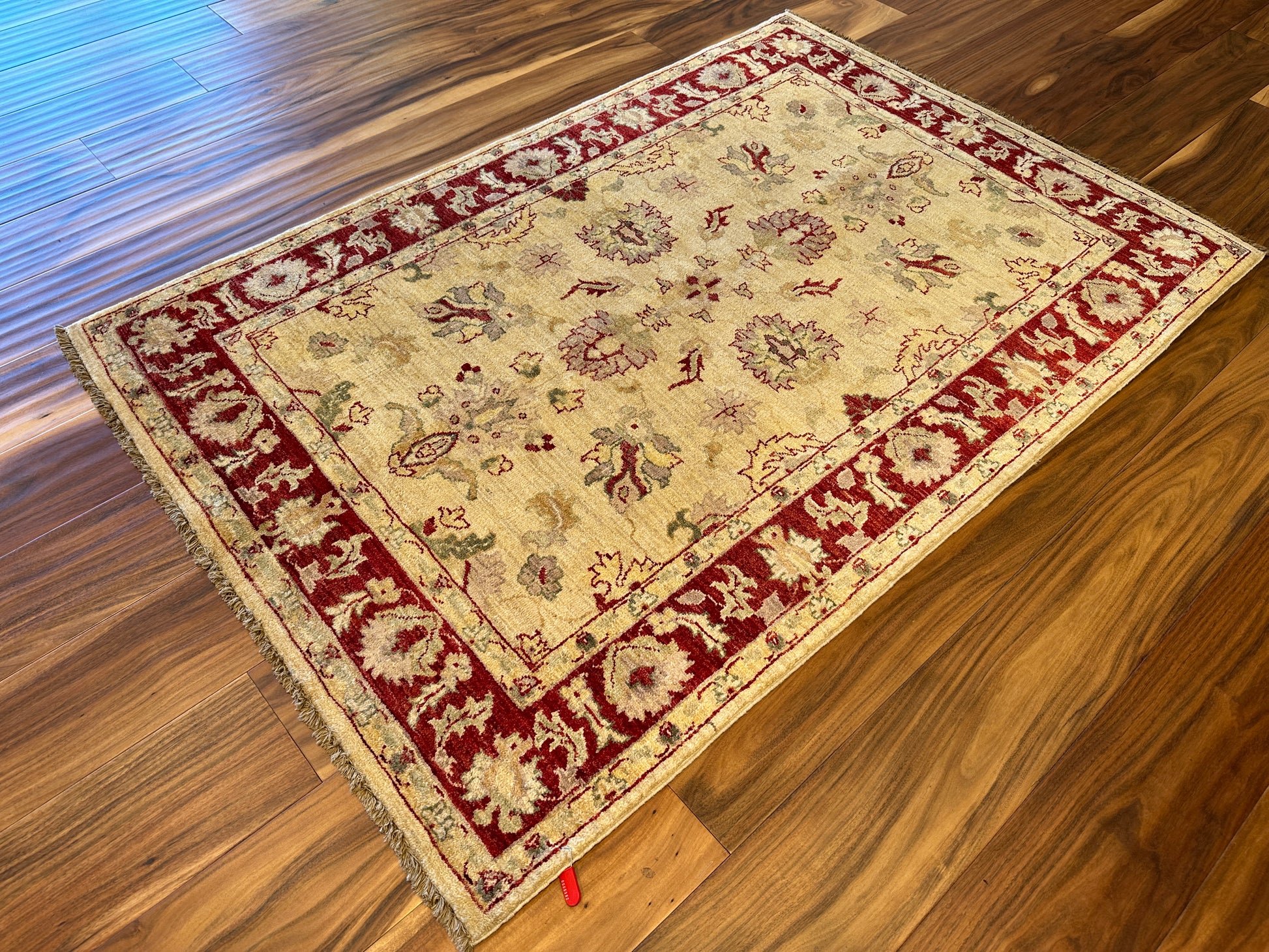 Richly detailed with timeless elegance, this rug features a classic allover floral pattern framed by a deep red border that enhances its regal appeal. The soft beige background provides warmth and balance, while accents of sage, gold, and rose add depth and refinement. Its traditional design lends a sense of history and harmony to any room it graces.
