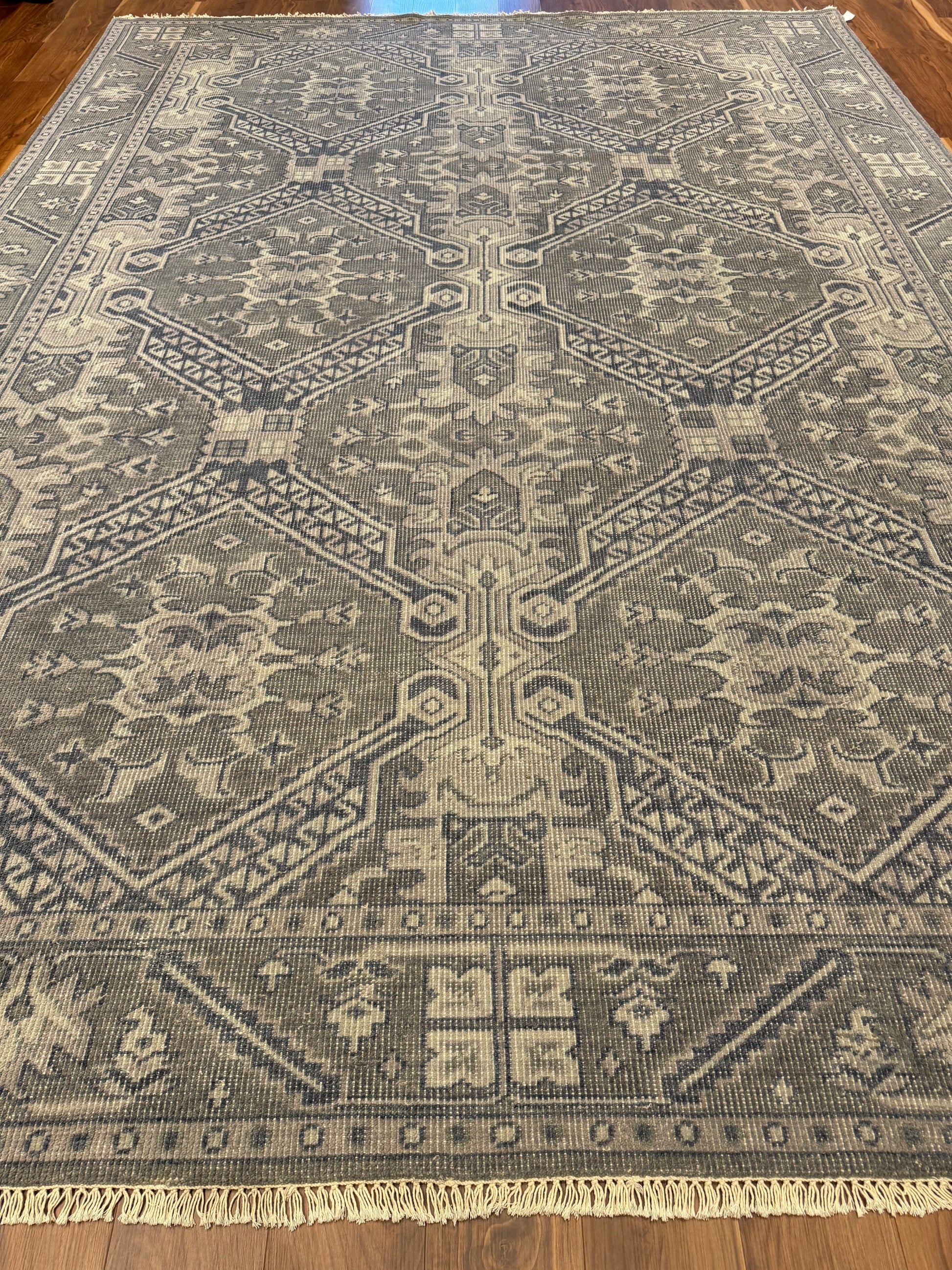 This Vintage Heriz rug exudes a classic charm with its intricate geometric patterns and floral motifs, combined in a harmonious symmetrical layout. Skillfully crafted from high-quality wool, the rug boasts a soft and inviting texture, making it a luxurious addition to any traditional or contemporary space. The earthy color palette provides warmth and versatility, perfect for creating an inviting atmosphere in homes or offices.